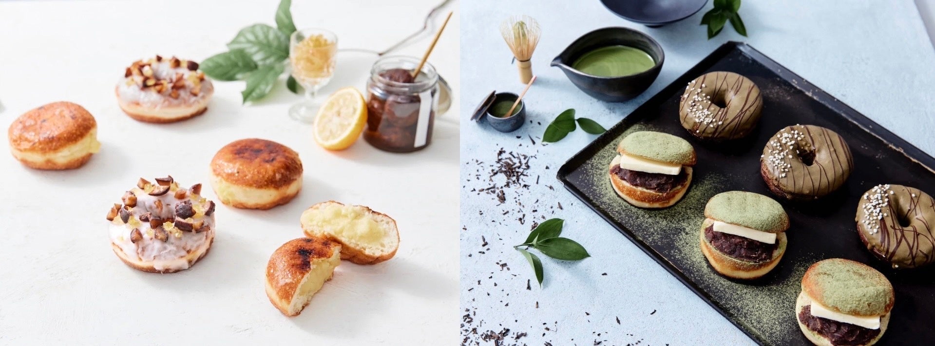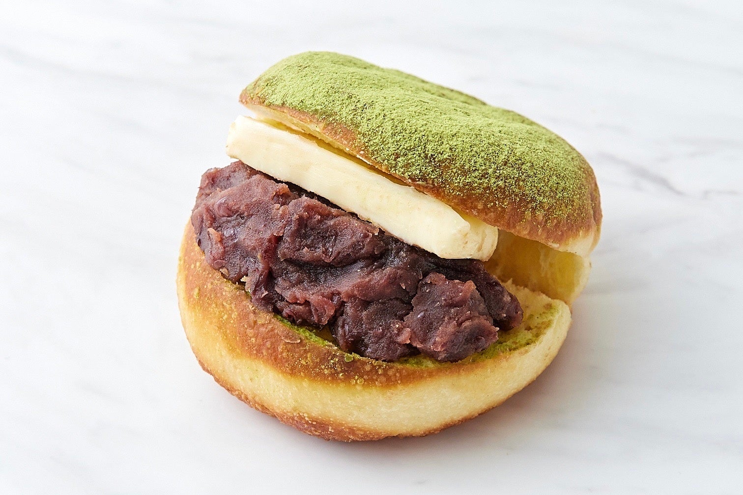 京都老舗和菓子店「中村軒」の粒あんとバターをドーナツに挟んだベストな組み合わせです。仕上げに京都産の宇治抹茶をまぶし、京和菓子のような和風ドーナツに仕上げました。