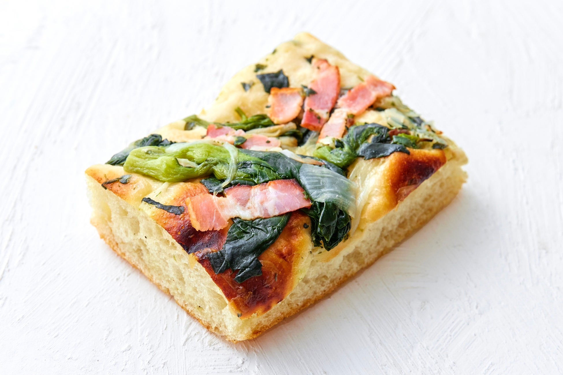 今が旬の菜の花やあさりを使用した春を一足早く感じられるタルティーヌです。グリーンピース、ベーコン、ゴルゴンゾーラチーズやモッツアレラチーズをのせて彩り鮮やかに仕上げました。