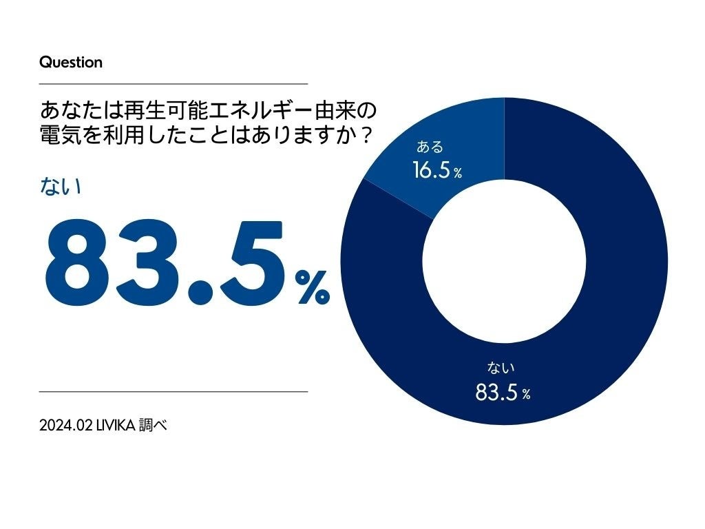 再生可能エネルギー由来の電気の利用経験を調査したところ、8割以上が「利用したことがない」という結果になりました。