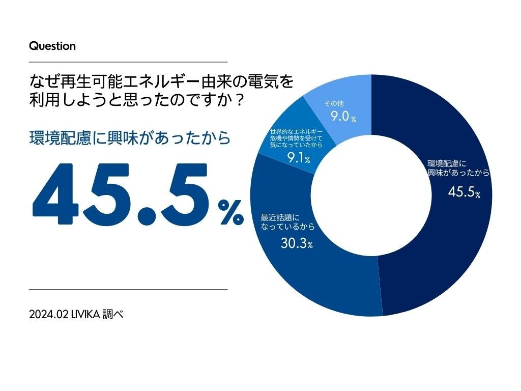 ・再エネ利用のきっかけ 一位”環境への配慮”(45.5%)