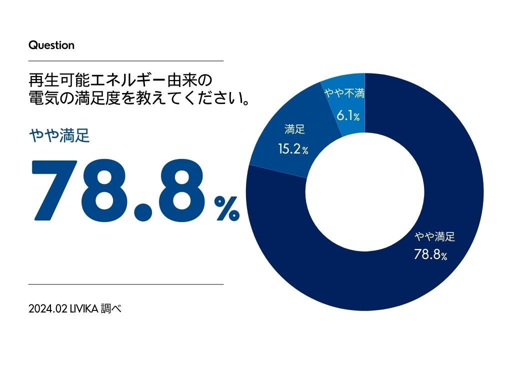 再生可能エネルギー由来の電気の満足度を調査したところ、94%がポジティブ(満足・やや満足)な回答結果となりました。