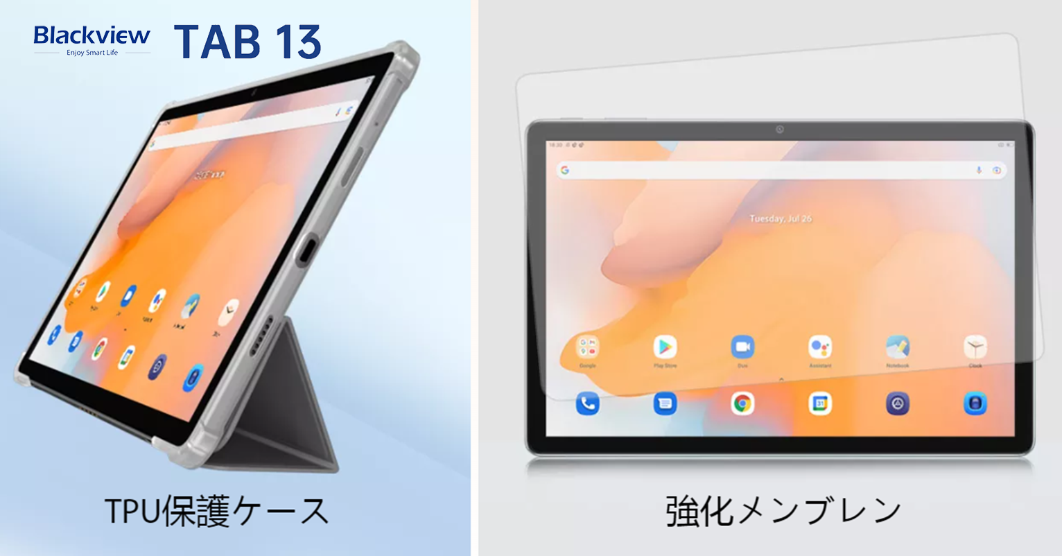 Blackview Tab13はなんとガラスフィルムや手帳型のケースが付属します。
