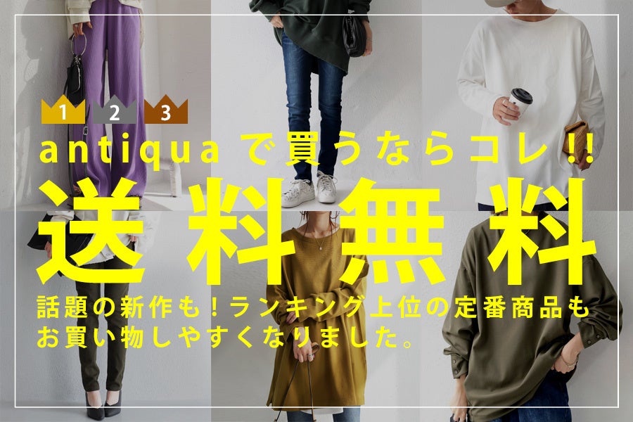 antiqua(アンティカ)を知ってもらいたいから、送料は弊社が負担します。2022年開始「antiquaで買うならコレ!一部アイテム送料無料。」2月18日発売新作トップスも仲間入り!