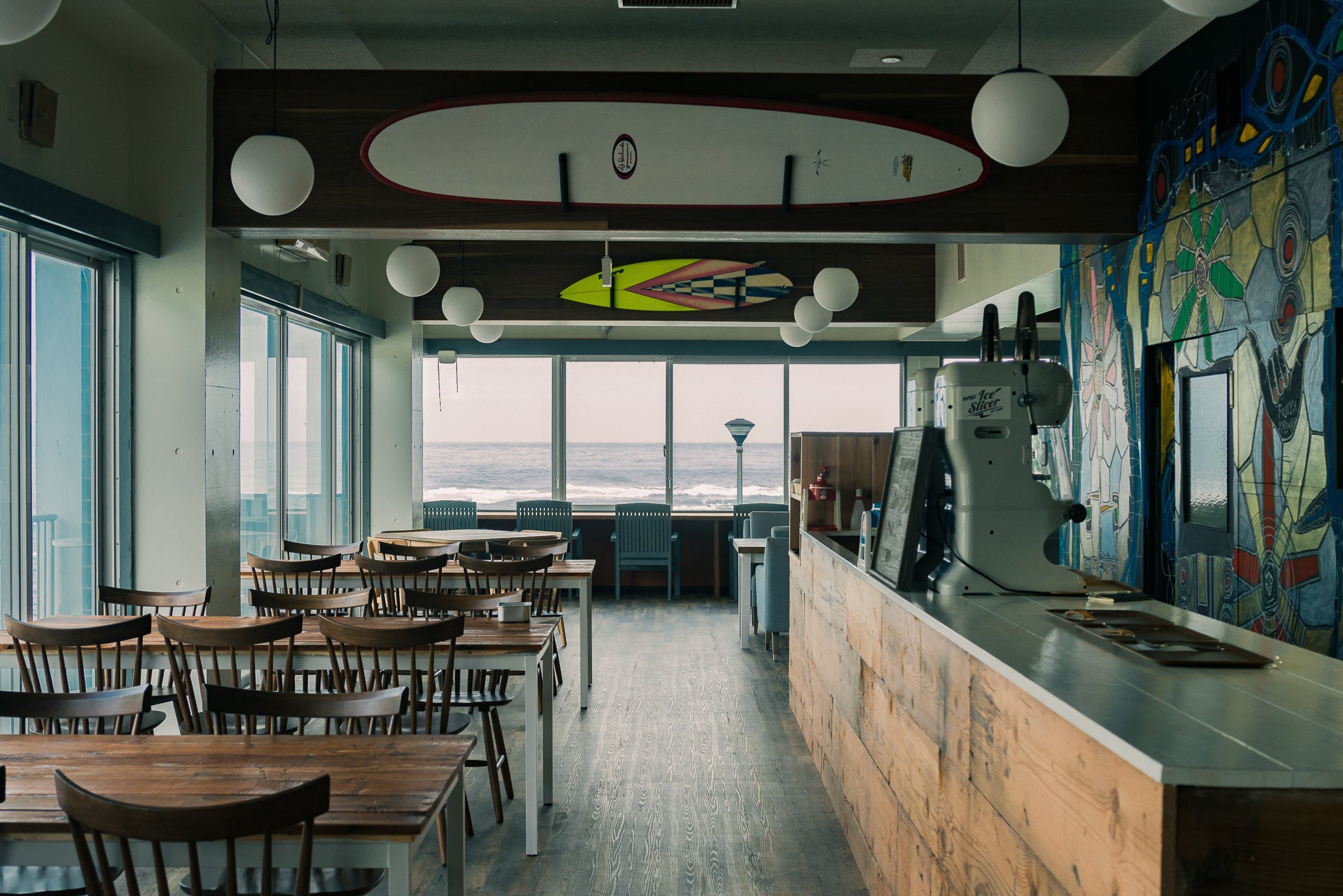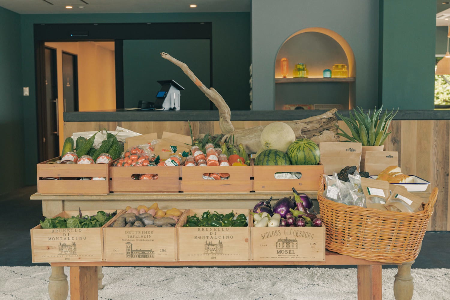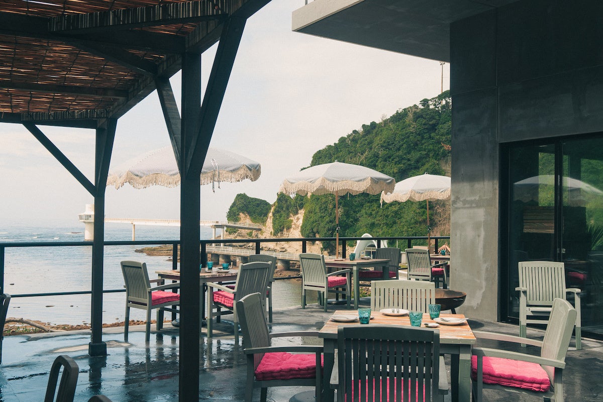 勝浦の海岸に溶け込むよう、海や山々など自然の素材が持つ色味で統一された店内では、地元勝浦で採れた食材を可能な限り使用した地中海料理を提供します。季節の野菜を使用したアヒージョ、鉄板で豪快に炊き上げるパエリア、伊勢海老のボイルなどをコース・アラカルトで楽しめます。料理に合わせたナチュラルワイン、カクテルなども充実しています。