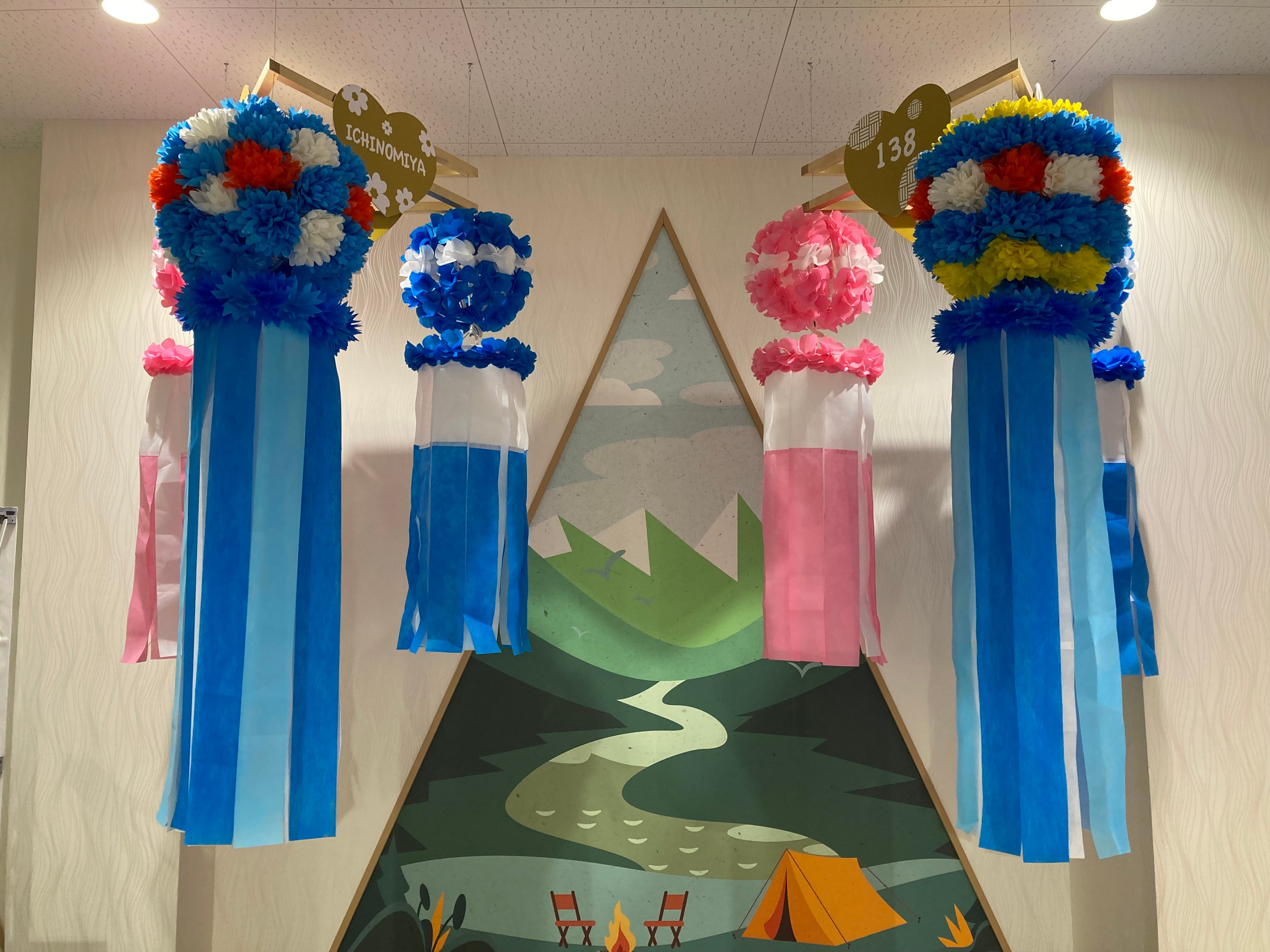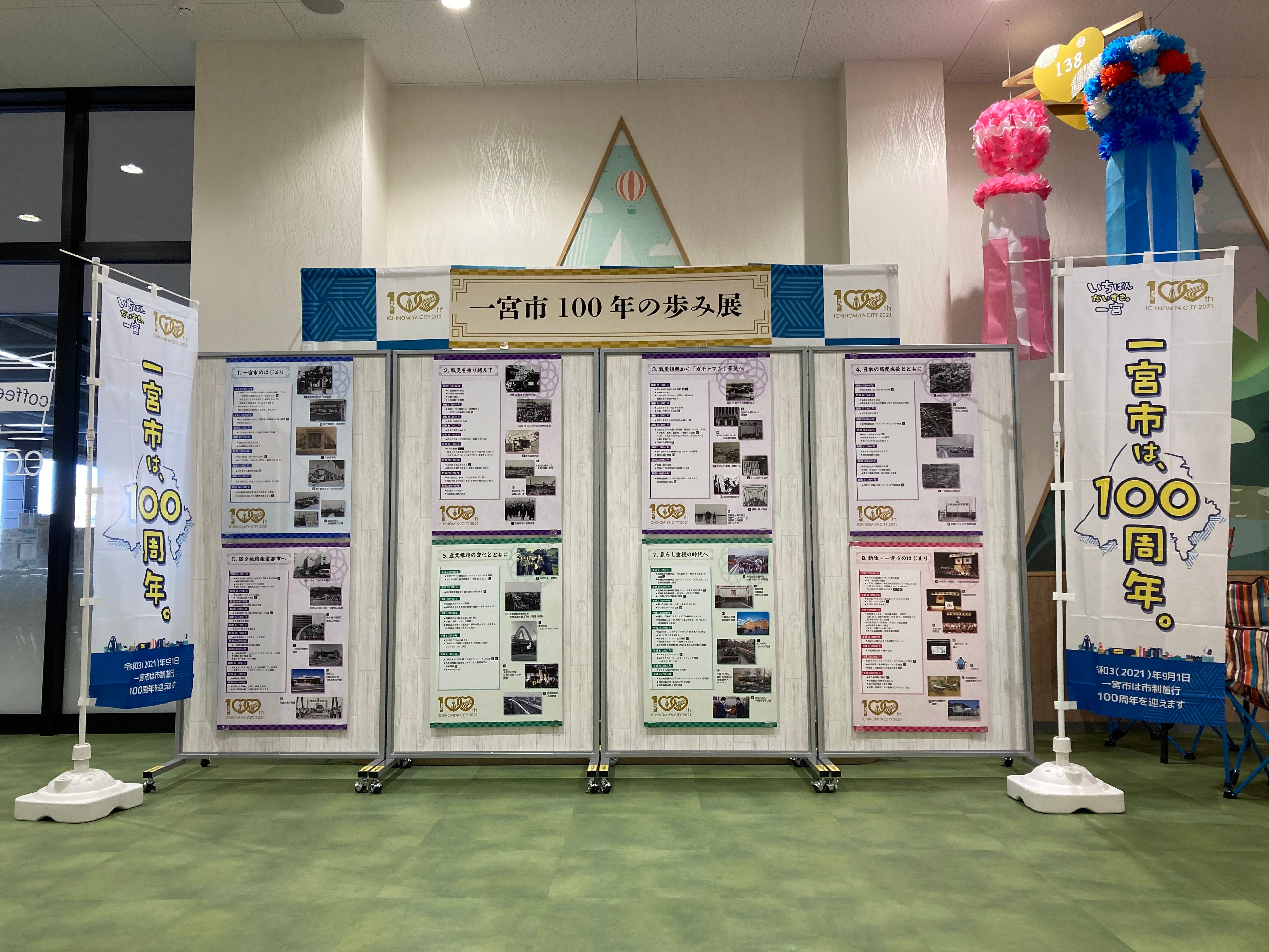 <一宮七夕まつりをイメージした吹き流しなどの天井吊り <一宮市100年の歩み展(特別展示)>