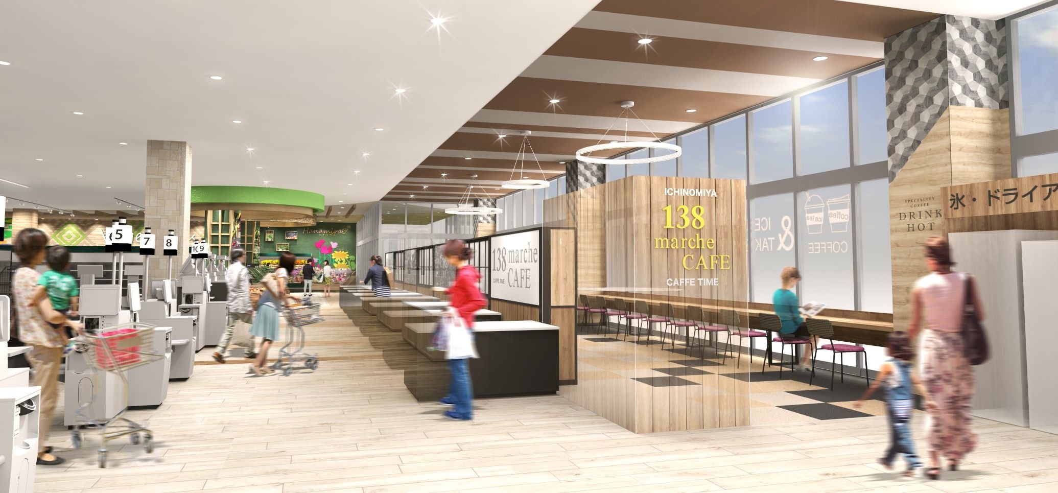 約720坪のスーパーマーケットは、品質・鮮度の良い「安全安心」な商品はもちろんのこと、減塩や糖質オフをはじめとした健康に配慮した商品、利便性・簡便性を高めた商品、「新鮮」で「安心」の店内「できたて」手づくり商品、平和堂名こだわりブランド「E-WA!」等の豊富な品揃えと、愛知県や一宮市を中心とした地元商品を多数取り揃えます。また、飲食のできる休憩エリア「138 Brunch COURT」や、旬の食をご提案する「移動式クッキングサポート」等の設備・サービスとともに、お客様の毎日の食卓や生活のお役に立つ店舗として、最高の「おもてなし」を実現してまいります。