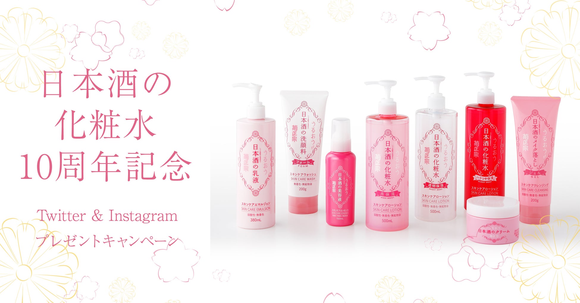 <日本酒の化粧水10周年記念>合計90名様に『日本酒の化粧水シリーズ』 全8アイテムが当たる!Twitter & Instagramプレゼントキャンペーン実施!