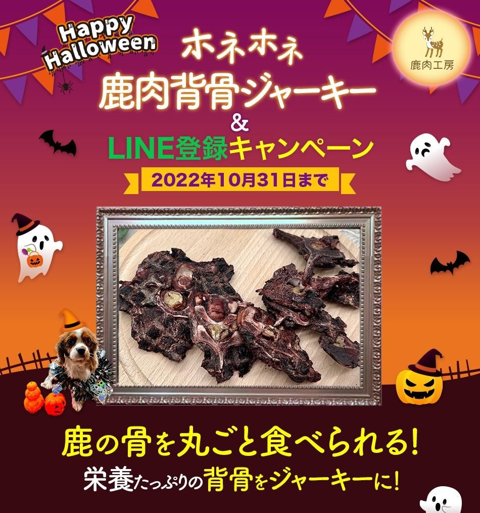 愛犬とのハロウィンにピッタリ「ホネホネ鹿肉背骨ジャーキー」鹿肉工房より期間限定で新発売!発売を記念してLINEキャンペーンも開催決定!