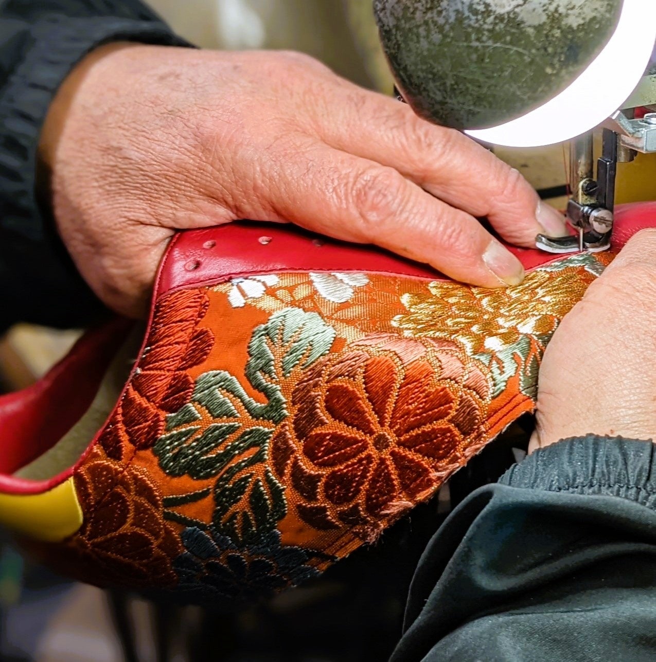 着物シューズを製作する職人技: