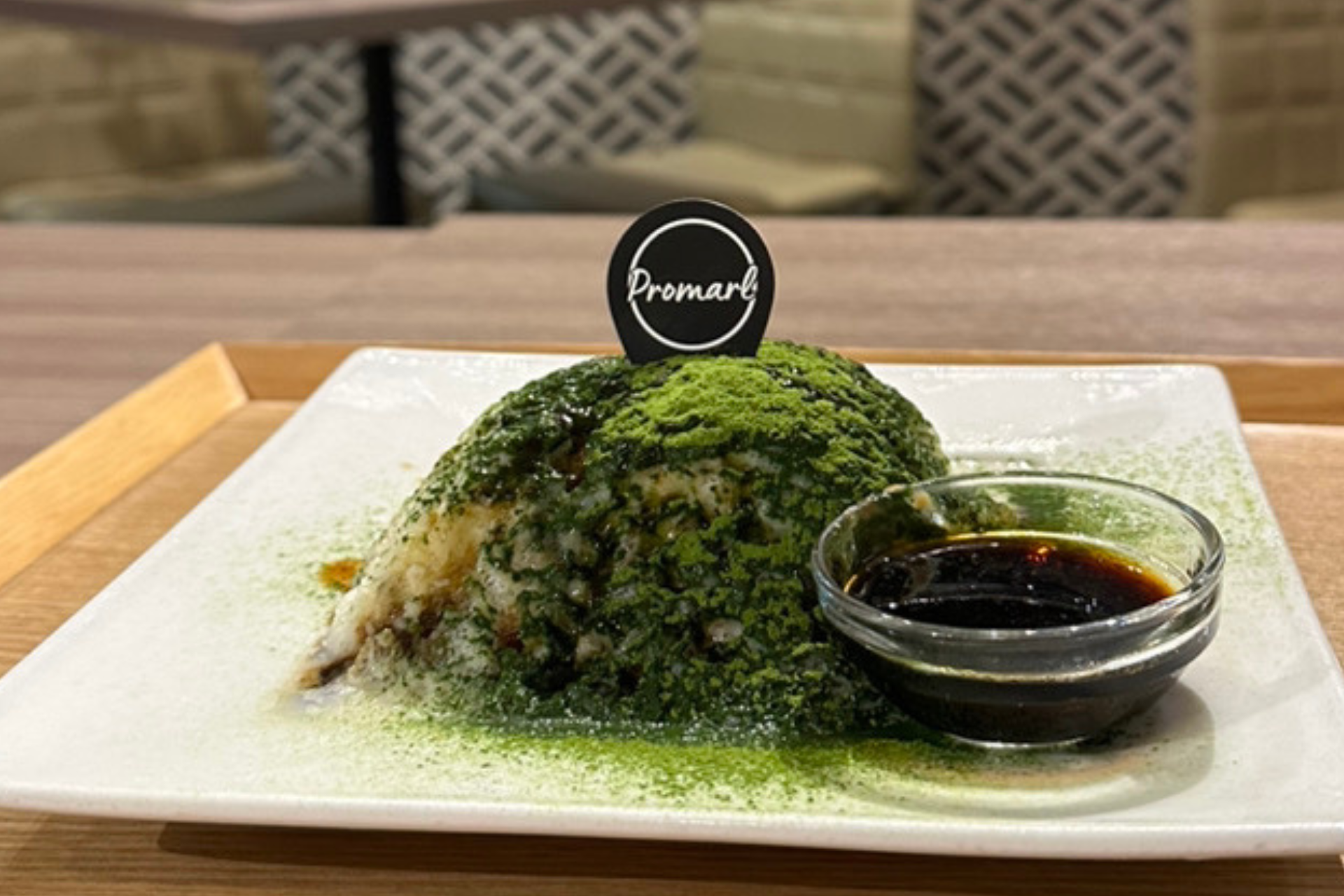濃厚なミルクベースにほろ苦い抹茶がかかった1品です。黒蜜をかけてお好みの甘さに調節可能。1皿で二度楽しめるメニューとなっています。黒蜜は、ラカンカがベースとなっているゼロカロリーのものを使用しているため、ダイエット中でも楽しめる商品です。