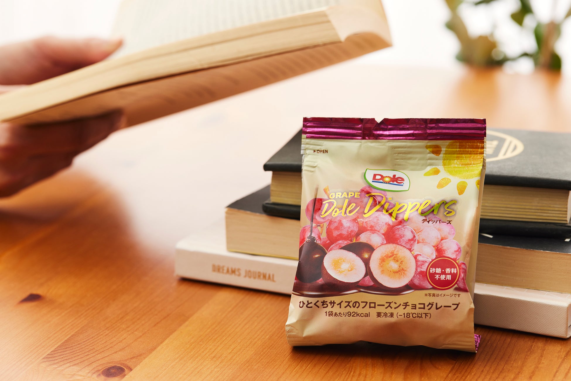 パッケージを採用しました。仕事や勉強、読書中でも手を汚さず手軽に食べることができます。