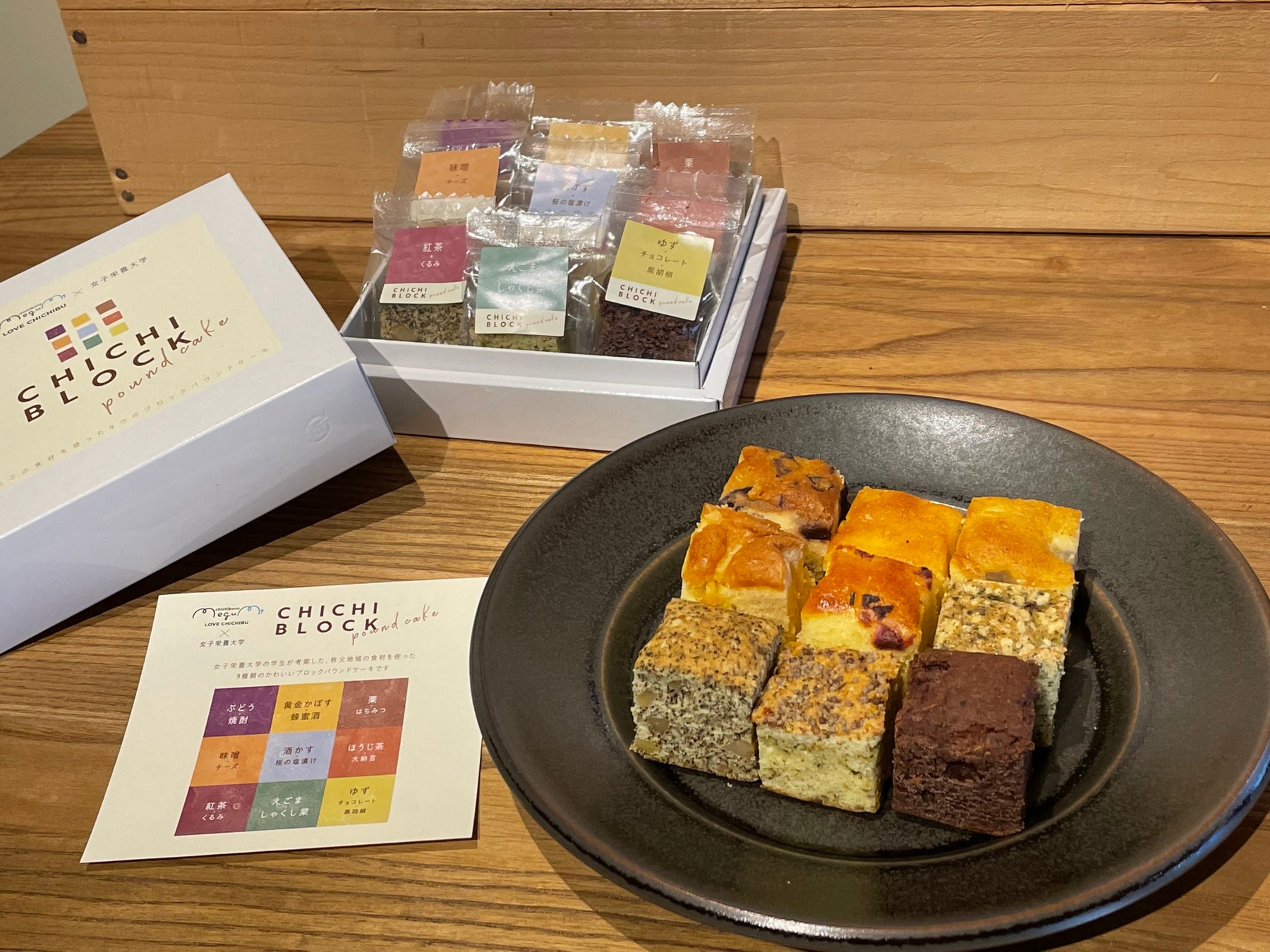 2年目の令和4年には、亀沢屋(皆野町)とラパンノワールくろうさぎ(秩父市)に協力してもらい、1市4町の食材12種類を使用した9種のキューブ型のパウンドケーキを開発し、じばさん商店や亀沢屋、矢尾百貨店などでの販売や、小池カフェではメニューとしてその月おすすめの3種の盛り合わせを提供しています。