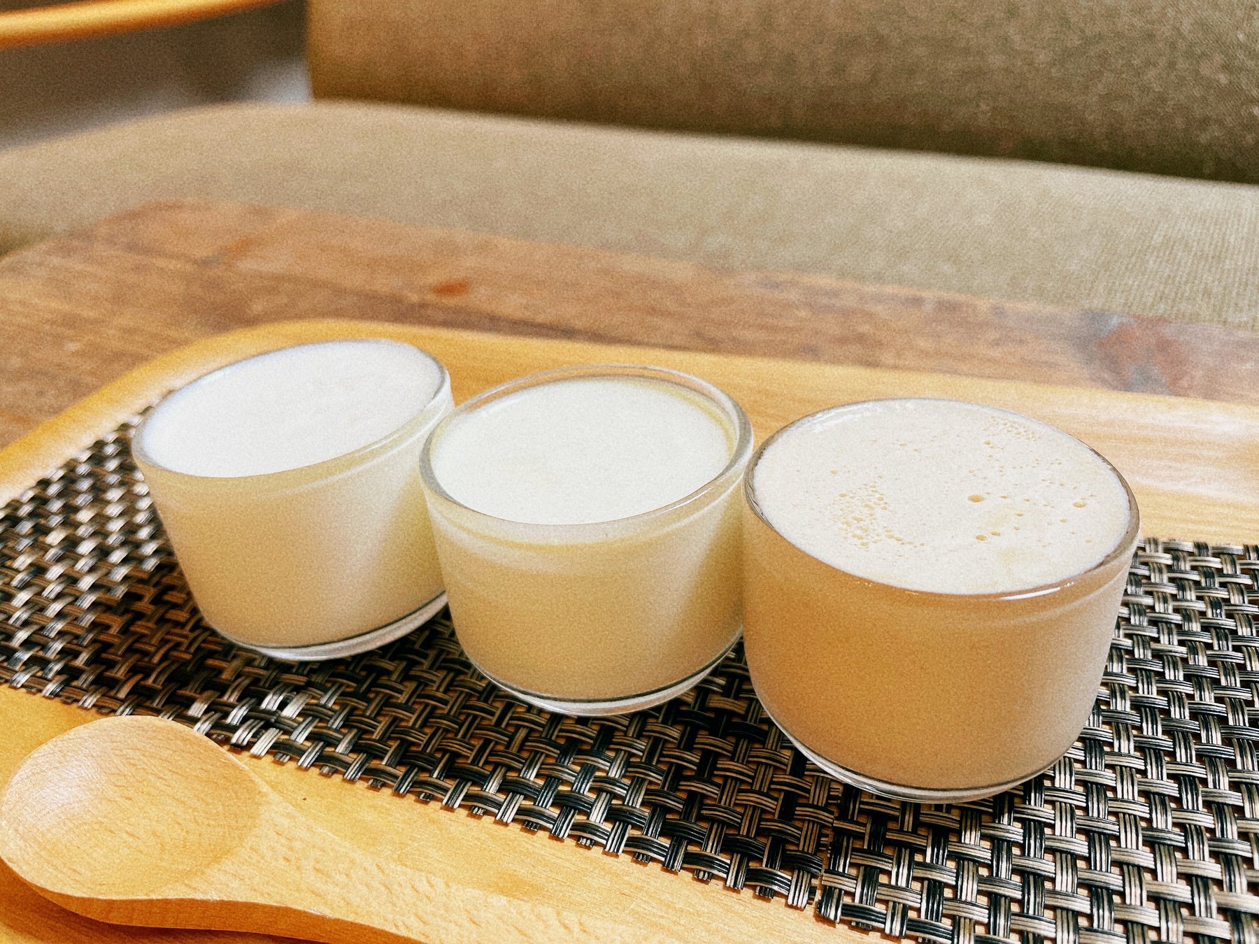 第一弾は3種類の「パンナコッタ」の盛り合わせで、使用している食材は酒かす(秩父市)、借金なし味噌(横瀬町)、麦茶(皆野町)、桑茶(皆野町)です。他の地域の食材は第二弾で使用します。
