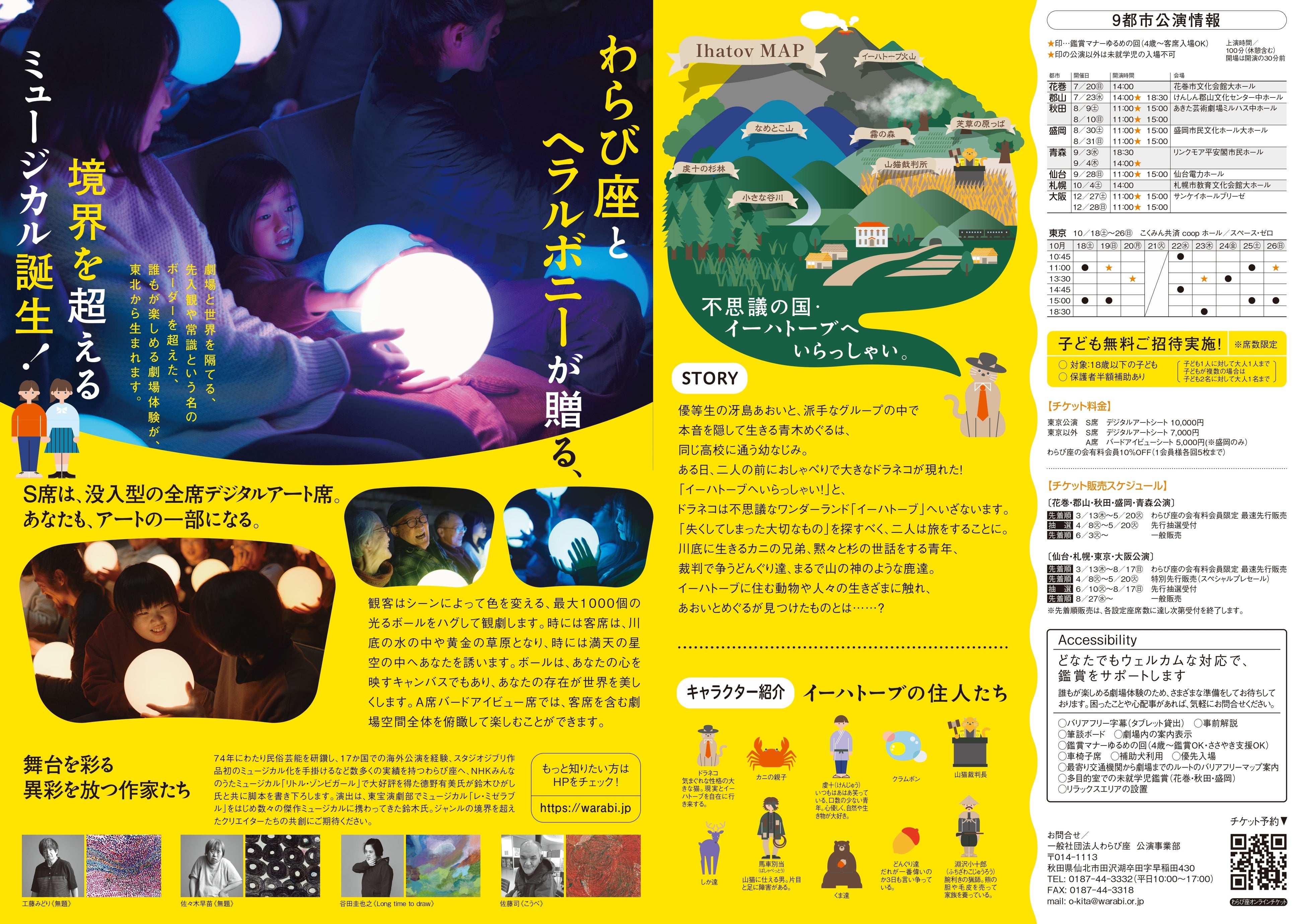 このたび、わらび座は、障害のイメージ変容と福祉を拠点に新たな文化の創出を目指すヘラルボニー(本社:岩手県盛岡市)との初の共創による新作ミュ-ジカル〈イーハトーブシアター『真昼の星めぐり』the Musical〉を、東京・新宿で上演いたします。