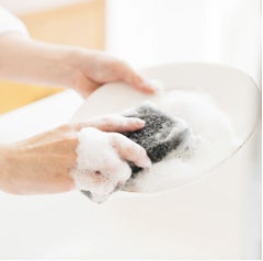 販売を行っています。製造から販売を行う中で、固形洗剤と相性の良いスポンジを研究し、高品質ポリウレタンを使用した、従来のスポンジの概念を覆す「サンサンスポンジ」が生まれました。約1年も使えるほど丈夫で長持ちなので、ごみの削減に。