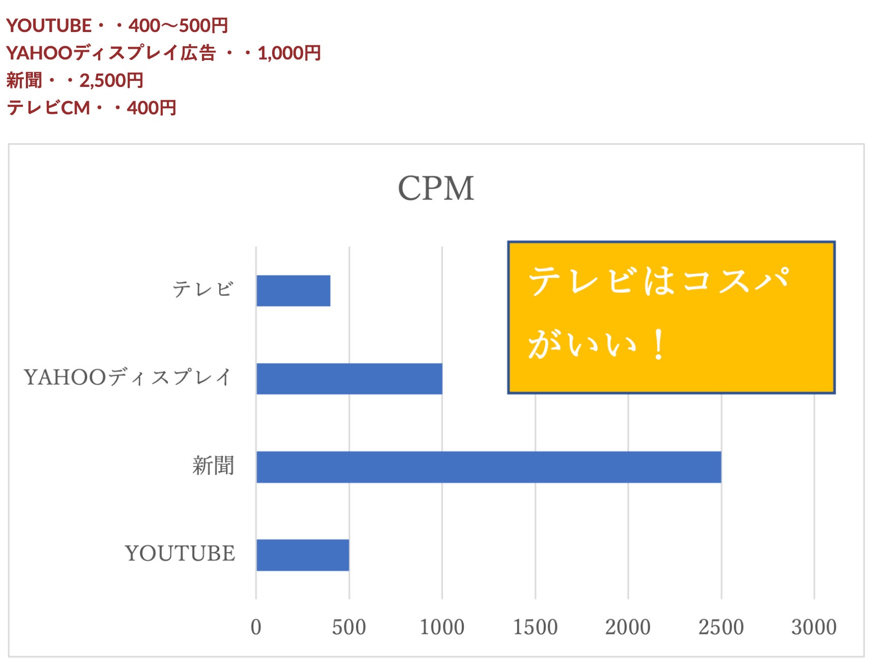 CPMで見るテレビCMの費用対効果