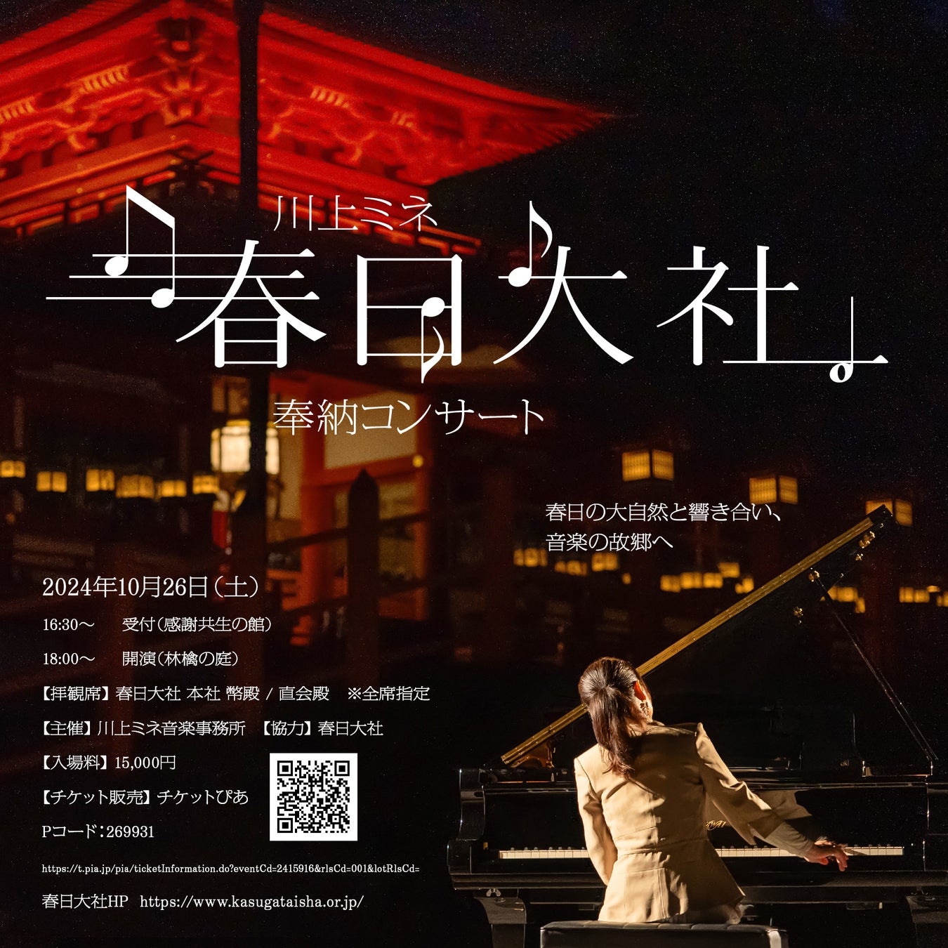川上ミネ 春日大社奉納ピアノリサイタル 2024年10月26日開催