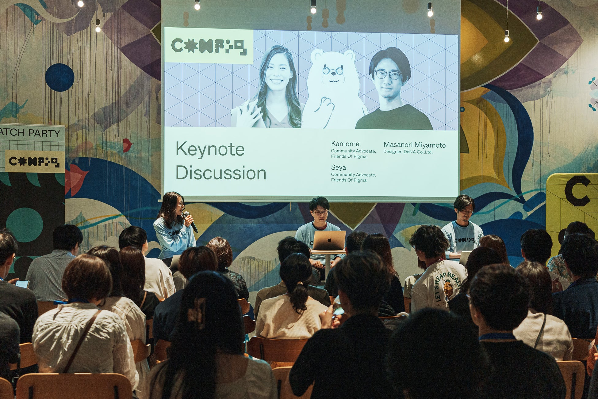 Watch Partyは世界各地のFigmaコミュニティで開催され、サンフランシスコのConfigの様子をほぼ同時に視聴し体感することができます。日本では6月22日(木)に虎ノ門でConfig Watch Partyが開催されました。Keynoteの振り返りセッションではFigma Advocatesが今回新たに発表されたばかりの機能についての解説やトークセッションを行い、Figmaコミュニティと一緒にリアルタイムで知識をアップデート。200名を超える来場者が集まった会場は熱気に包まれました。
