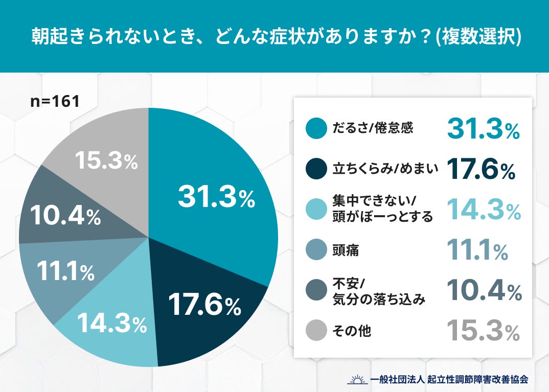 朝起きられないときの主な症状は「だるさ・倦怠感」(31.3%)が最多