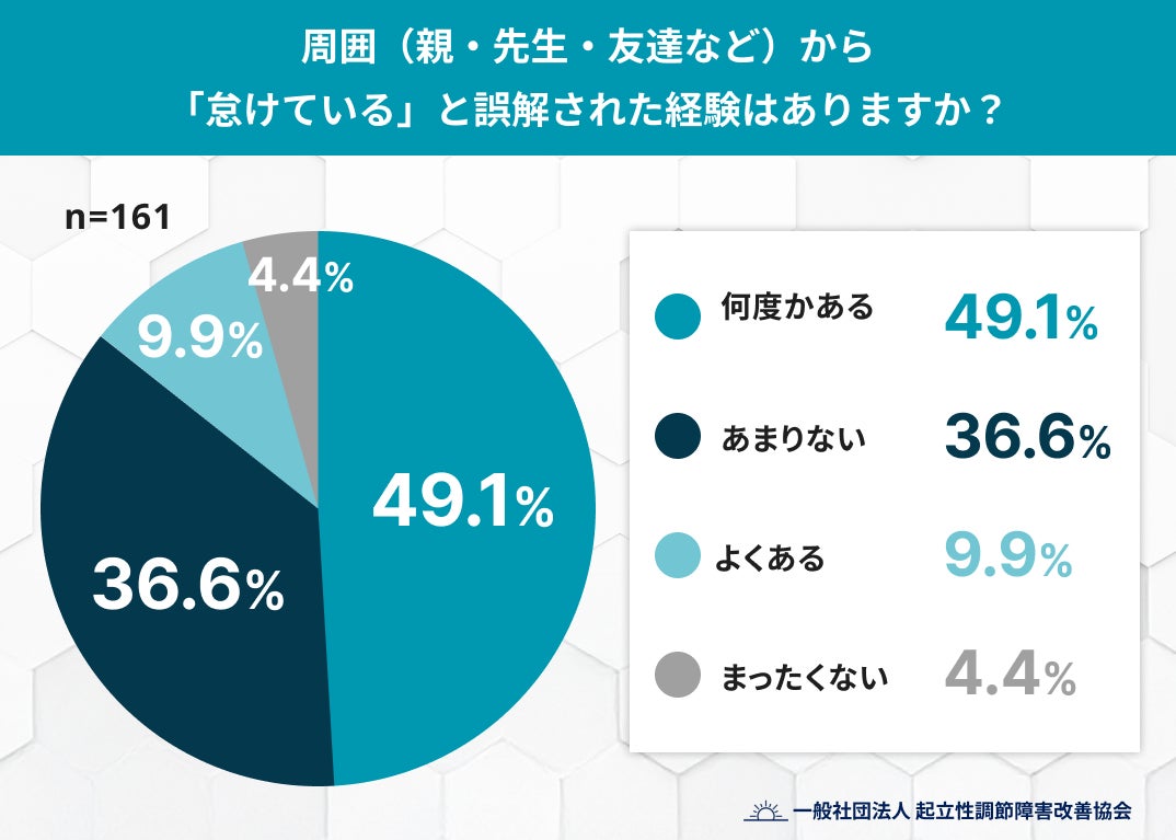 約半数(49.1%)が「怠けている」と誤解された経験あり