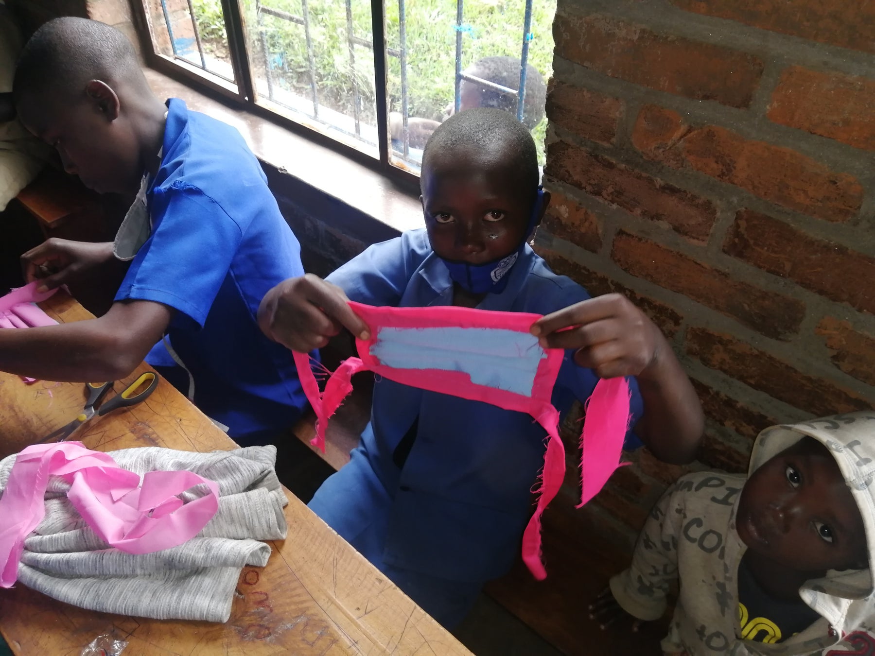 2017年に完成した家庭科教室で、マスクの作り方も学んでいます。