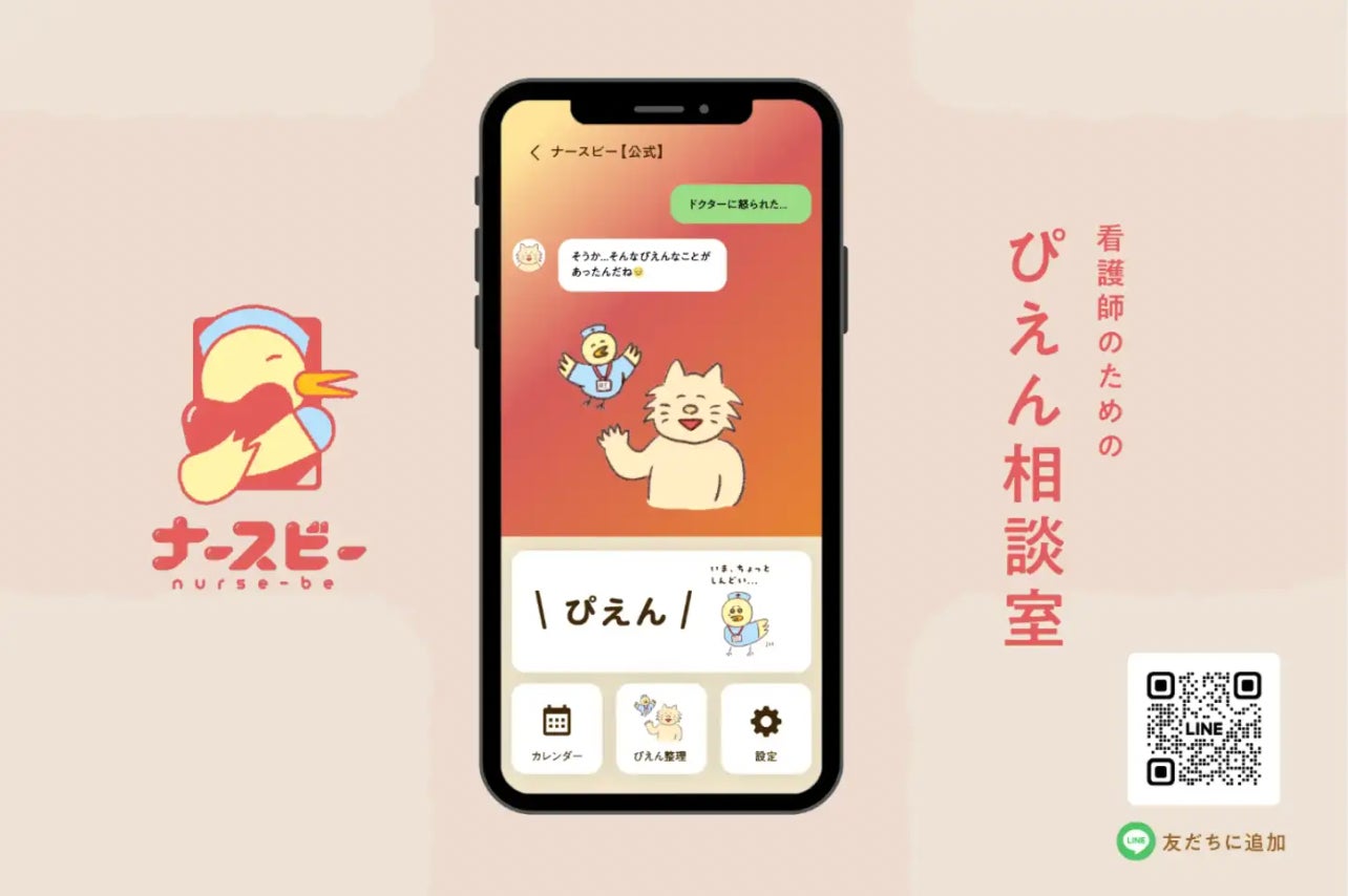 「働く人のこころを守る」をビジョンに掲げ、メンタルヘルスケアをさまざまな形で提供するヘルステックベンチャーです。私たちは、急性期病棟の看護師の54%が抑うつ症状を抱えながら働いている現状に着目し、看護師に特化したメンタルヘルスケアサービス「ナースビー」を開発・展開。「ナースビー」は「Nurse well-being」の略であり、看護師の皆さまが「健康で、安心して、幸せに生きることをサポートしたい」という願いを込めています。