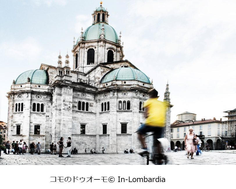 州の北西部、スイスとの国境の近くに位置する都市、コモは世界屈指の湖水リゾート地コモ湖の玄関口として人気の高い都市です。山や湖に囲まれた自然豊かな場所で、世界中の富裕層やセレブリティの別荘が多い避暑地としても知られており、ゲーテやヘミングウェイといったヨーロッパの文豪たちもこの地で夏のひと時を過ごし、コモ湖は「スターウォーズ」をはじめ多くの映画のロケ地にもなっています。