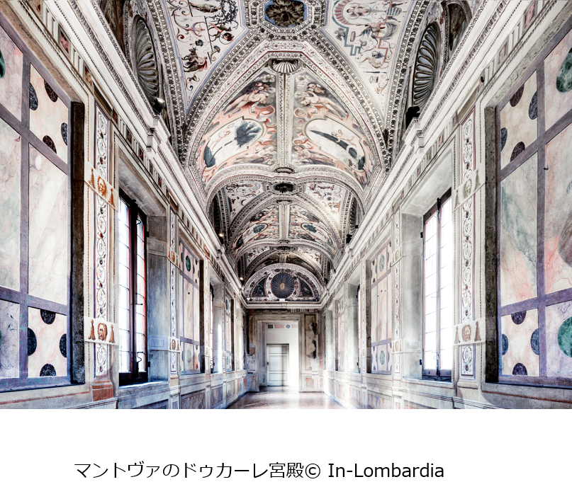 ゴンザーガ家は芸術と文化を厚く保護したことで有名で、特にコンザーガ家に嫁ぎ入り、名画「モナ・リザ」のモデルではないかといわれた才媛、イザベラ・デステは多くの芸術家を庇護しました。その結果、マントヴァは、ドゥカーレ宮殿内のアンドレア・マンテーニャによる壁画・天井画で飾られた 「婚礼の間」、テ離宮のジュリオ・ロマーノが部屋全体に壁画を描いた「巨人の間」など、ルネッサンス時代の芸術作品の宝庫となっています。