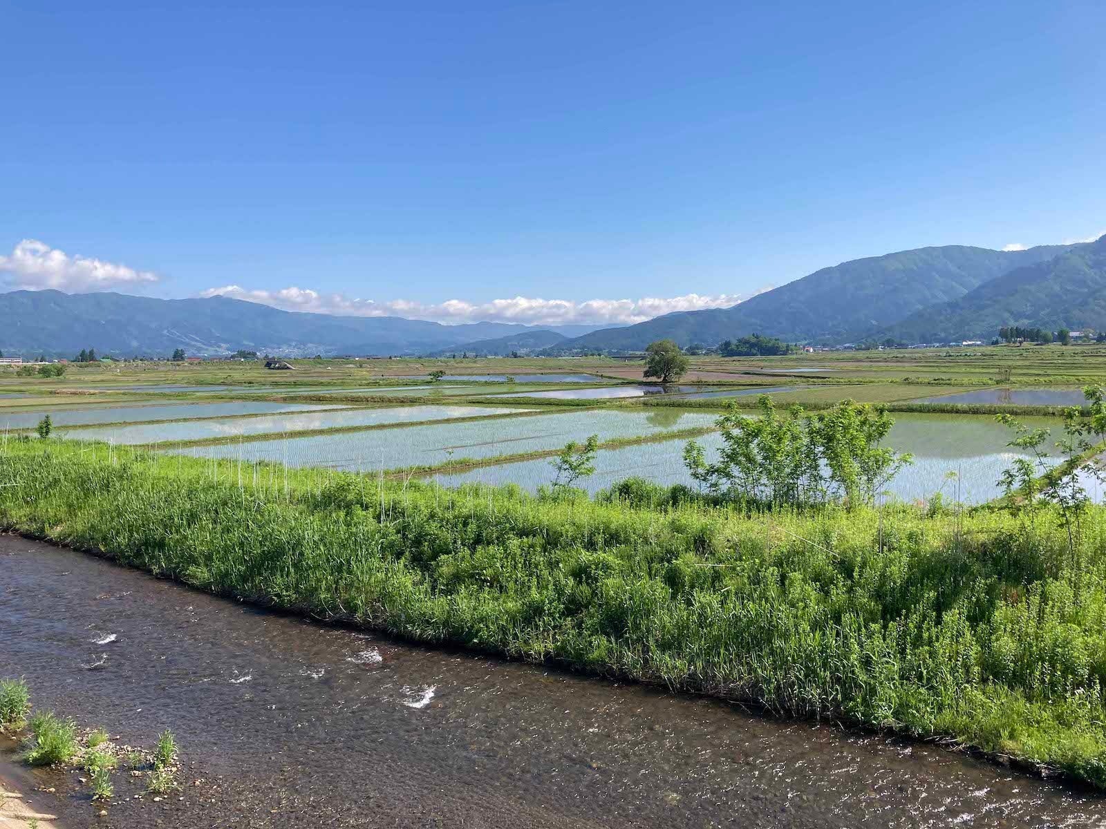 例年5月下旬から6月初旬には水が入ったばかりの田んぼが鏡のようになってとっても美しいです。