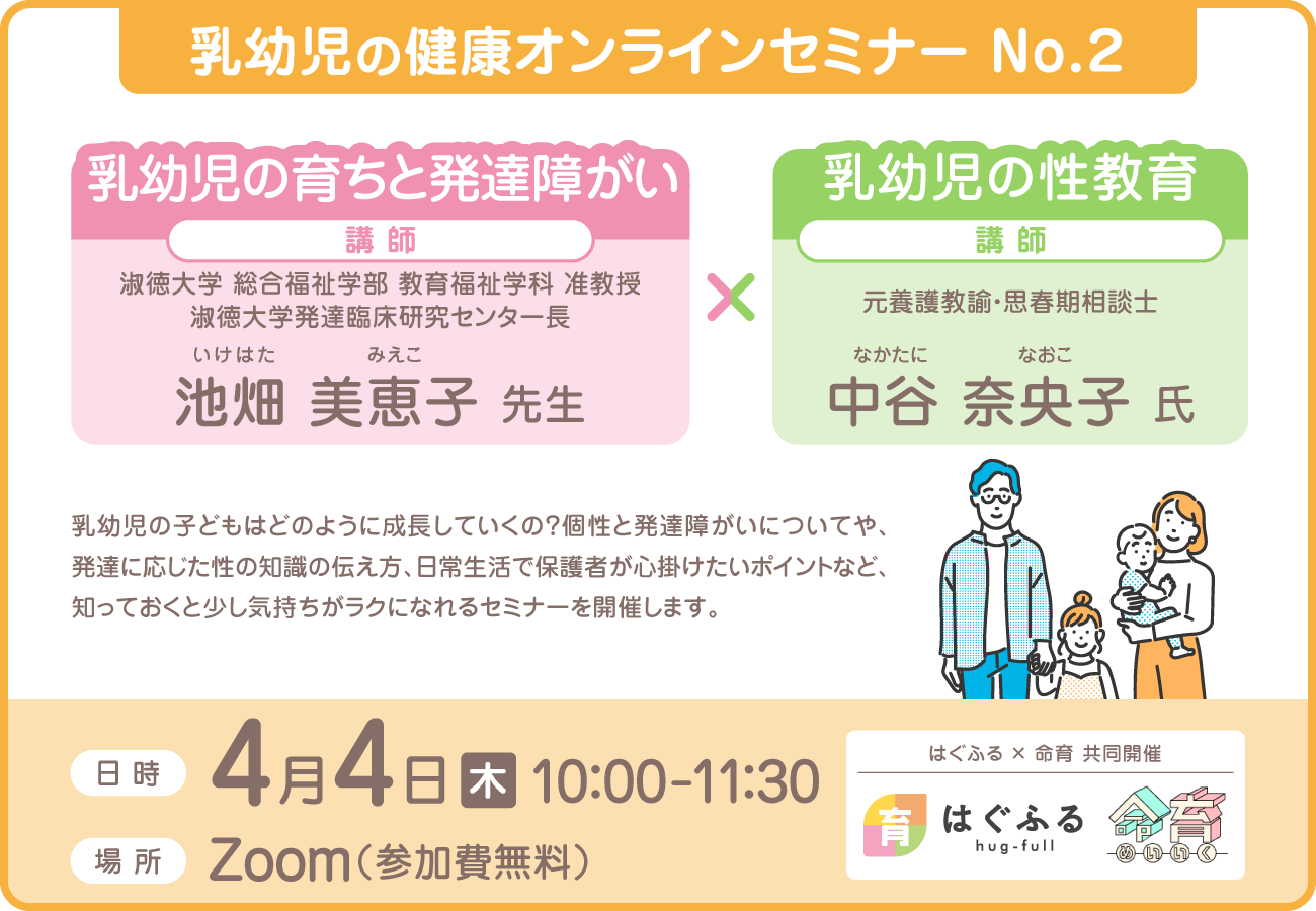 乳幼児の健康オンラインセミナー第2回目のテーマは「子供の成長と発達障がい」と「性教育」です。