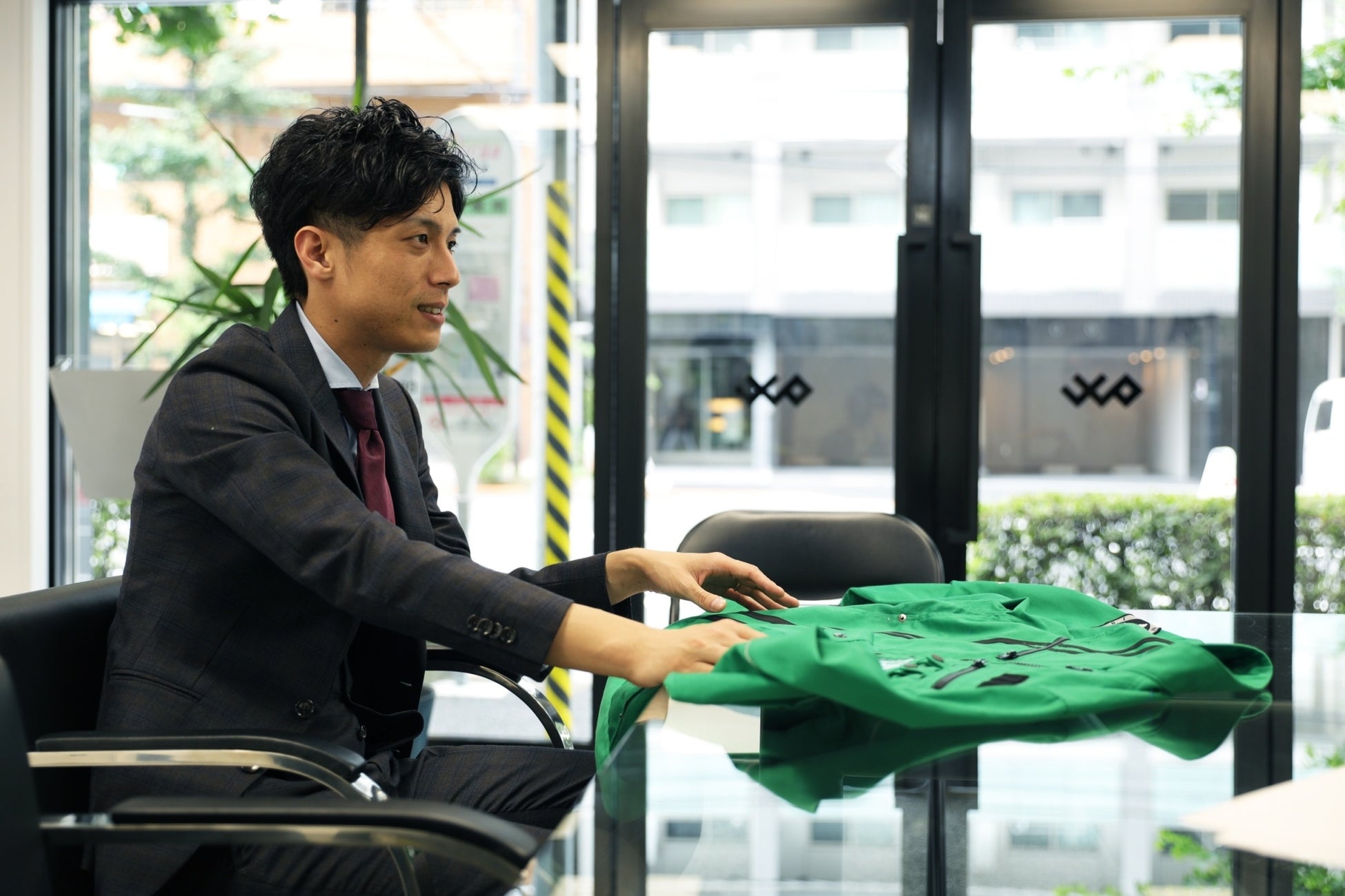 袖に脱着式の企業ネームワッペンを採用したことで、通勤や退勤の際にはネームを取り外せば、普段着としての活用も可能。ワッペンデザイン等の詳細に関してはお問い合わせください。