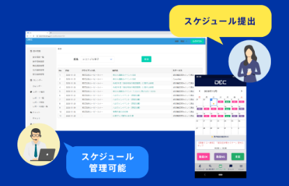 アプリのカレンダー画面から出勤可否日程を提出し、管理者が勤務を決定した案件が反映されます。アプリだけでシフトのスケジュール管理ができ、案件の抜け漏れが発生しません。
