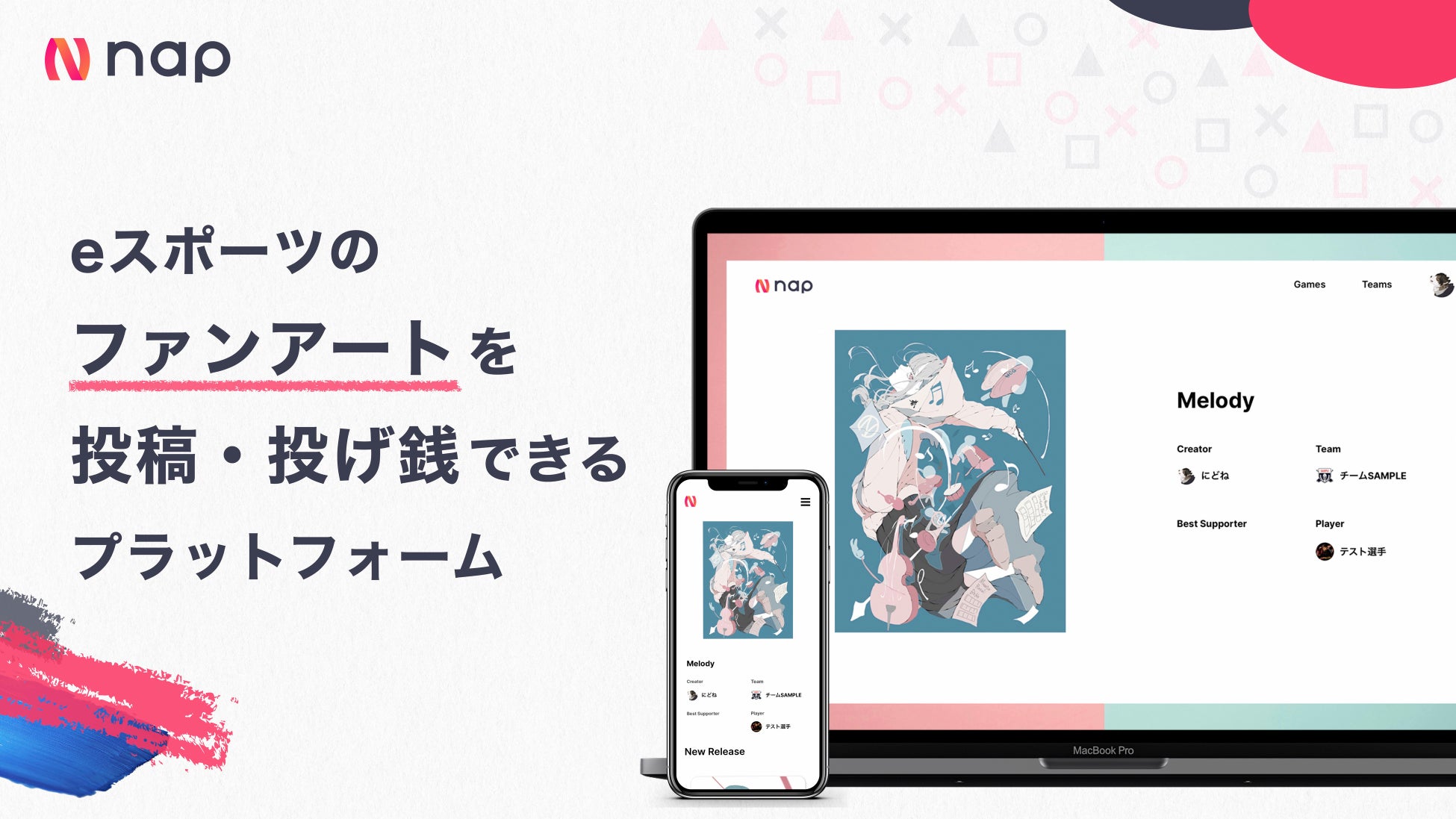 株式会社nap(本社:東京都新宿区、代表取締役:藤野 慎平)は、eスポーツ選手やチームのファンアートを投稿・投げ銭ができる応援プラットフォーム「nap (ナップ)」のローンチを発表いたします。