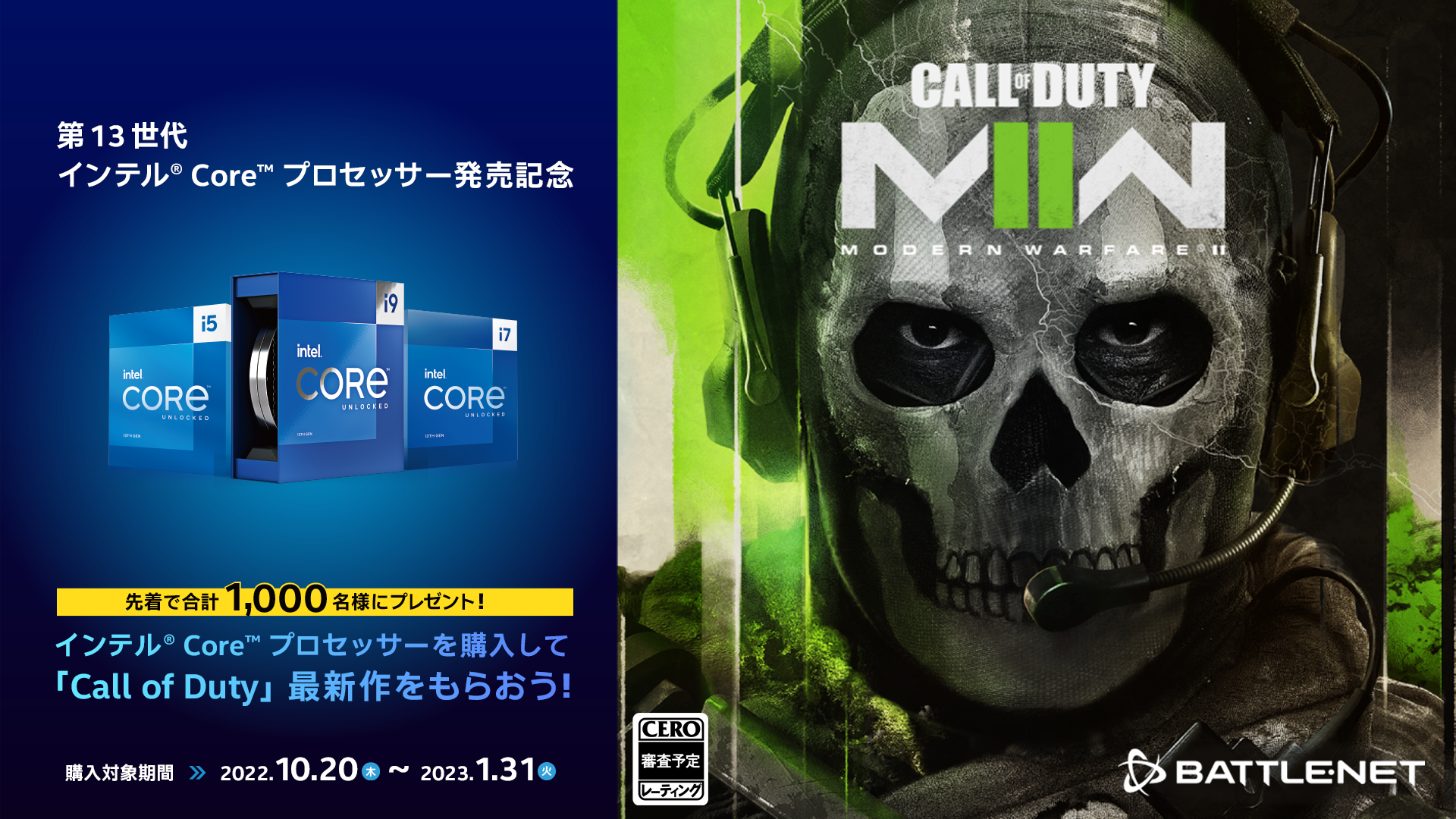 10月20日 (木) ~ 2023年1月31日 (火) まで、、「Call of Duty」最新作「Call of Duty: Modern Warfare II」 PC 版がもらえるお得なキャンペーンをインテルが実施中!
