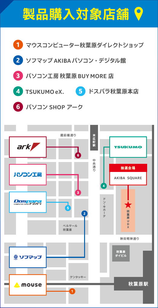 購入したレシートを抽選会場 (AKIBA SQUARE) でスタッフにご提示ください。
