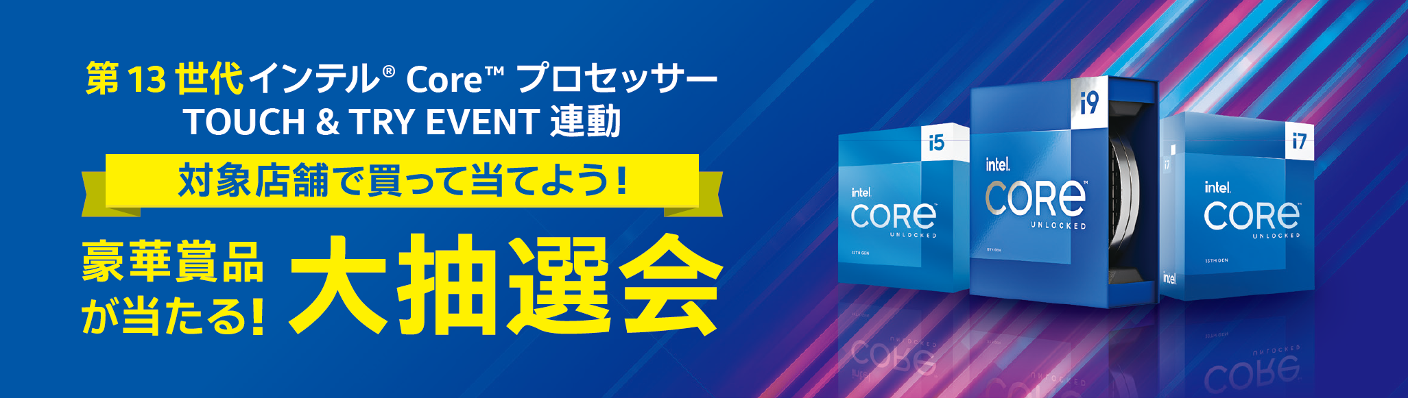 2022年11月19日(土)と20日(日)の2日間、東京・秋葉原のAKIBA SQUAREにて第13世代インテル® Core™ プロセッサーのパフォーマンスを体験いただけるイベント「圧巻のパフォーマンスを体験しよう!TOUCH & TRY EVENT」を実施いたします。さらにイベント当日に対象ショップで対象製品を買うとオリジナルマウスパッドが先着でもらえるキャンペーンや、当日のお買い物で豪華賞品が当たる抽選会も同時開催いたします。