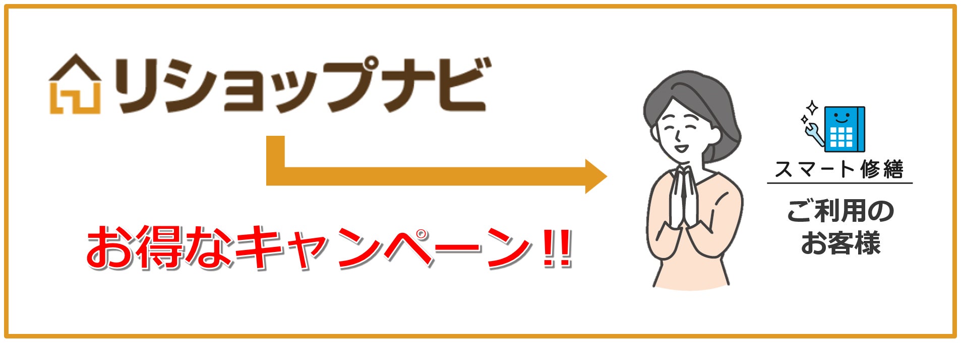 「共用部の工事」の見積、工事支援を行っている「スマート修繕」のご利用者に向けて、「リフォーム」の見積もり依頼件数No.1 のリフォームマッチングサイト「リショップナビ」をお得に利用できるキャンペーンを展開します。