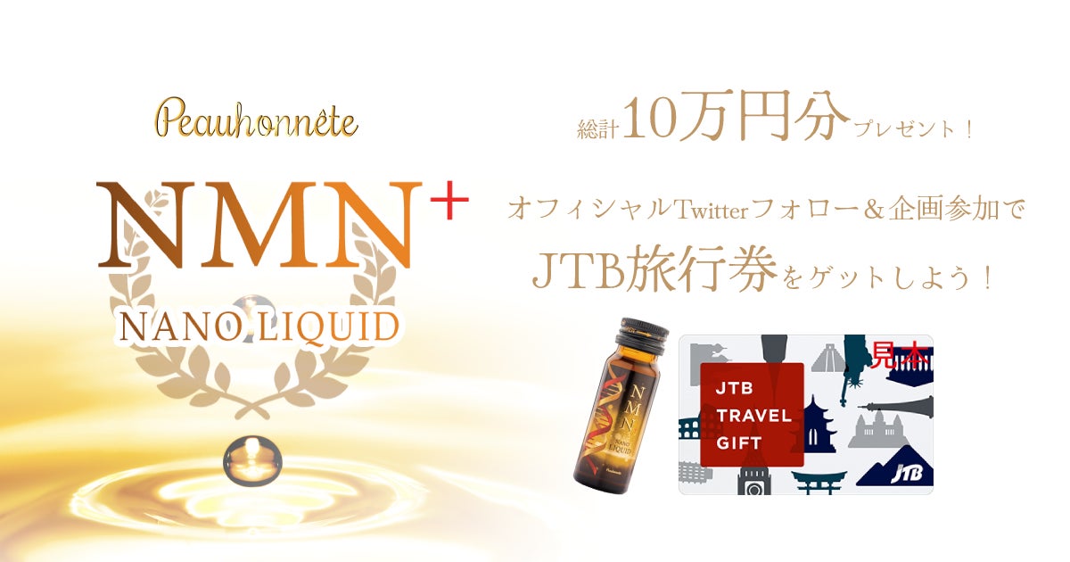 NMN ナノリキッド公式 Twitter フォロー&画像投稿でJTBトラベルギフトカードが15名様に当たるキャンペーンを開催