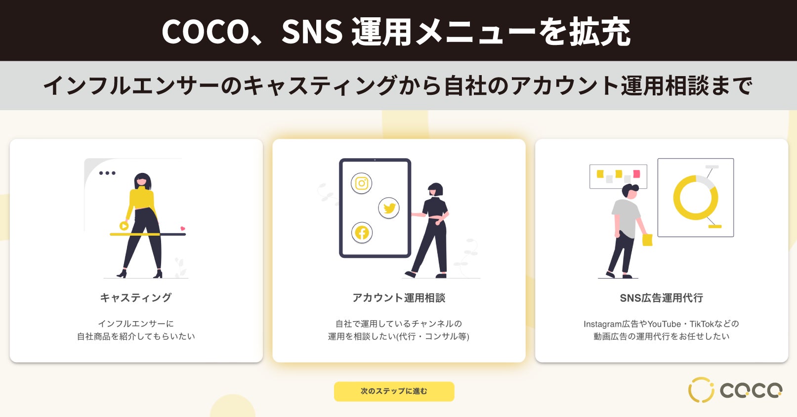 COCO、インフルエンサーPRに加えてSNS運用メニューまで拡充|業界のプロ達へ相談できる!