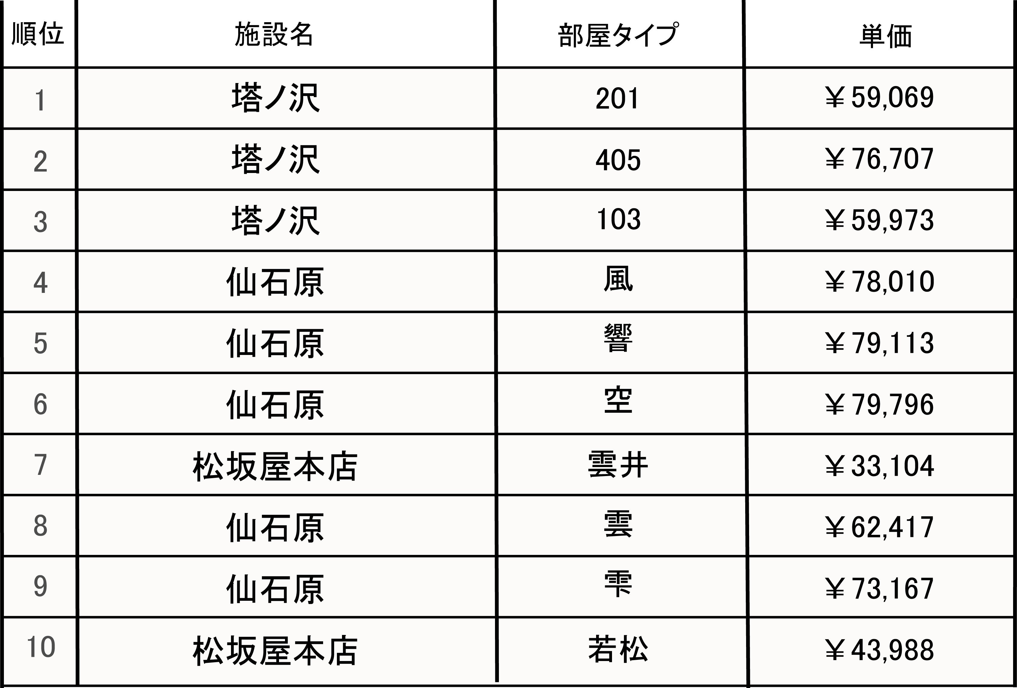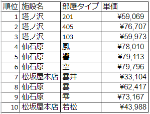 上位には金乃竹 塔ノ澤が、箱根湯本からほど近いエリアのアクセスの良さと全室露天風呂付きである事から、