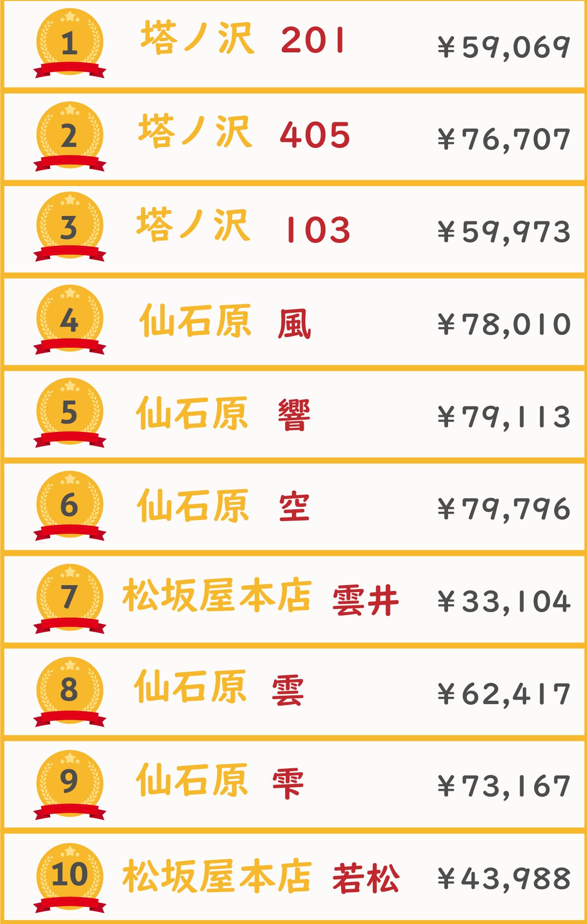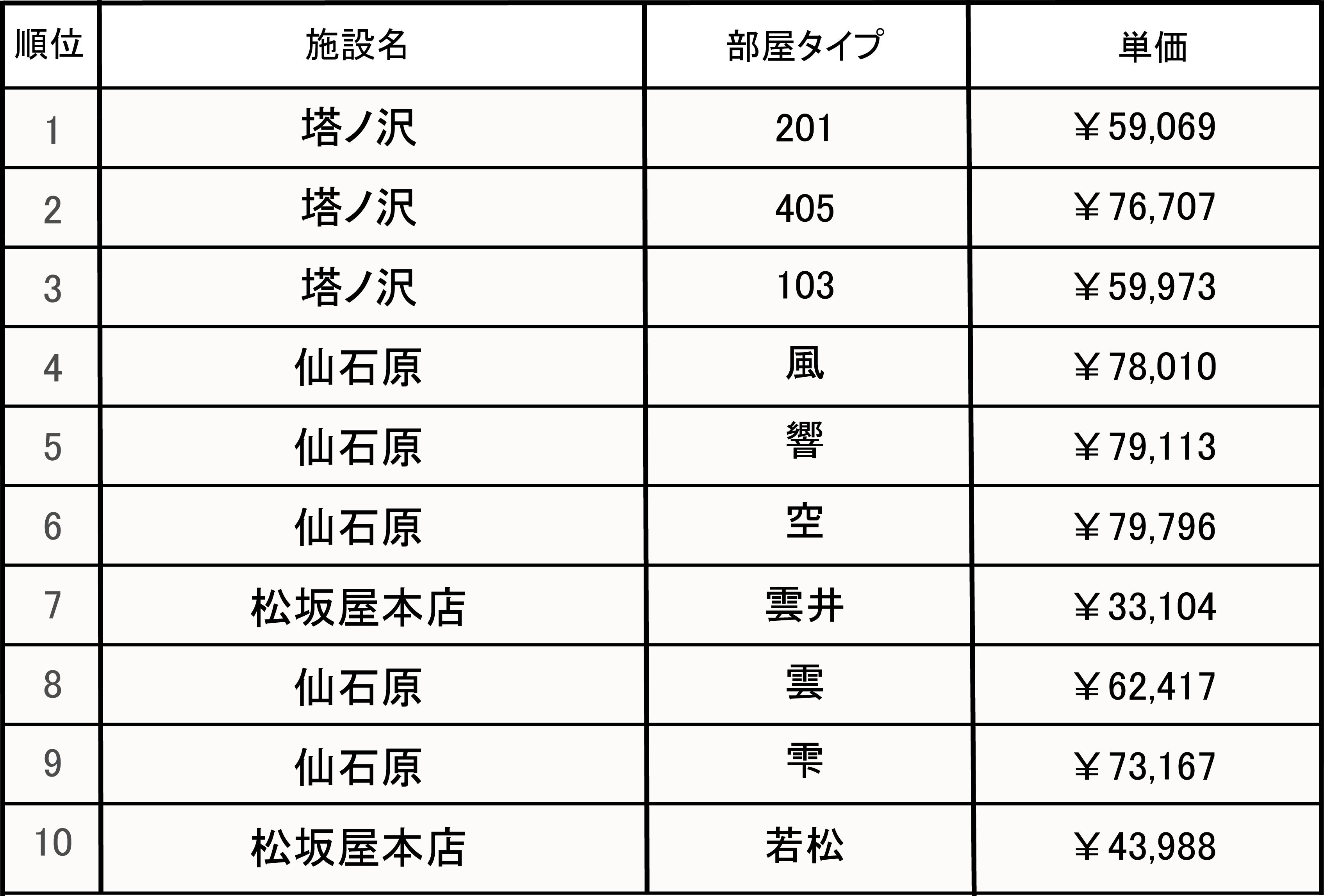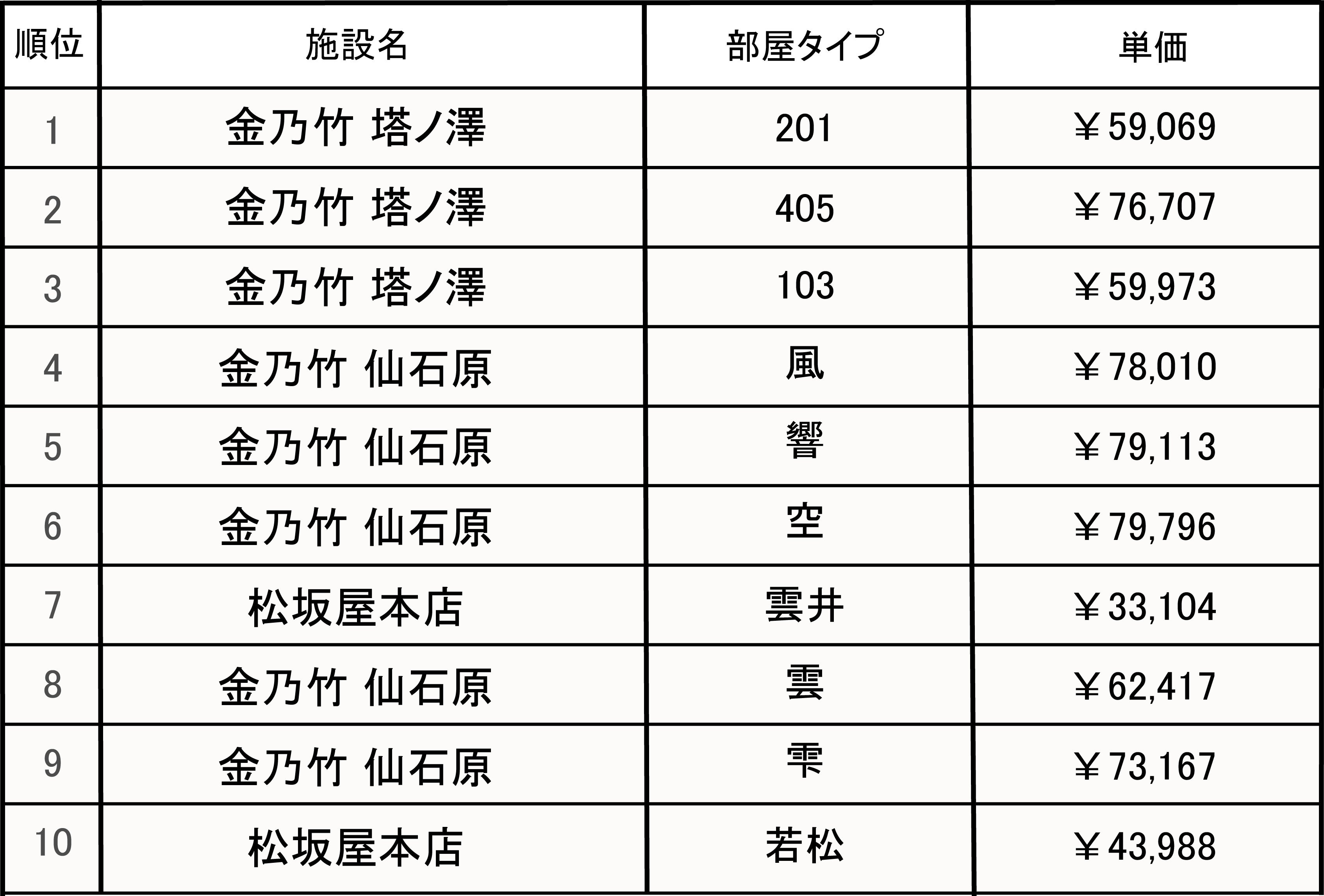 ▼2022年金乃竹グループ上半期予約ランキング(旅館施設部門)