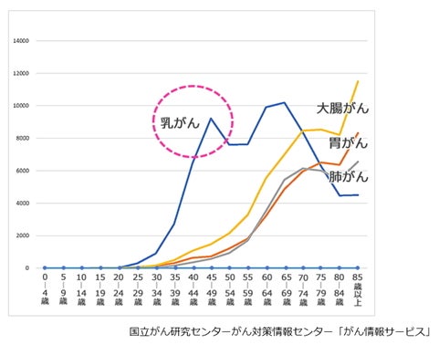 日本では、近年、乳がんの罹患者は急激に増加し、現在は女性の9人に1人が罹ると言われています。40代になると急に罹患率が増えるのが特徴で、女性活躍社会を目指す日本において、対峙すべき大きな社会課題の一つとなっています。