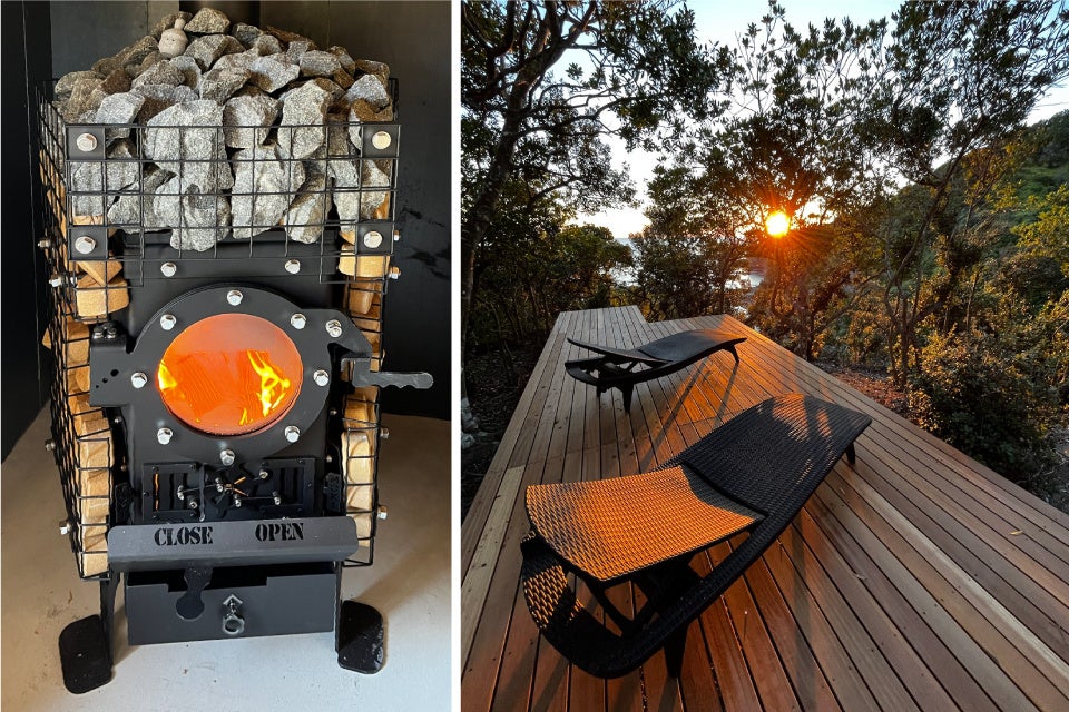 フィンランドの伝統的なサウナは丸太小屋で、熱源は薪を燃やし熱した石。外の自然や、薪の音や香りを感じながら柔らかいロウリュウでじっくり体の芯から温まります。