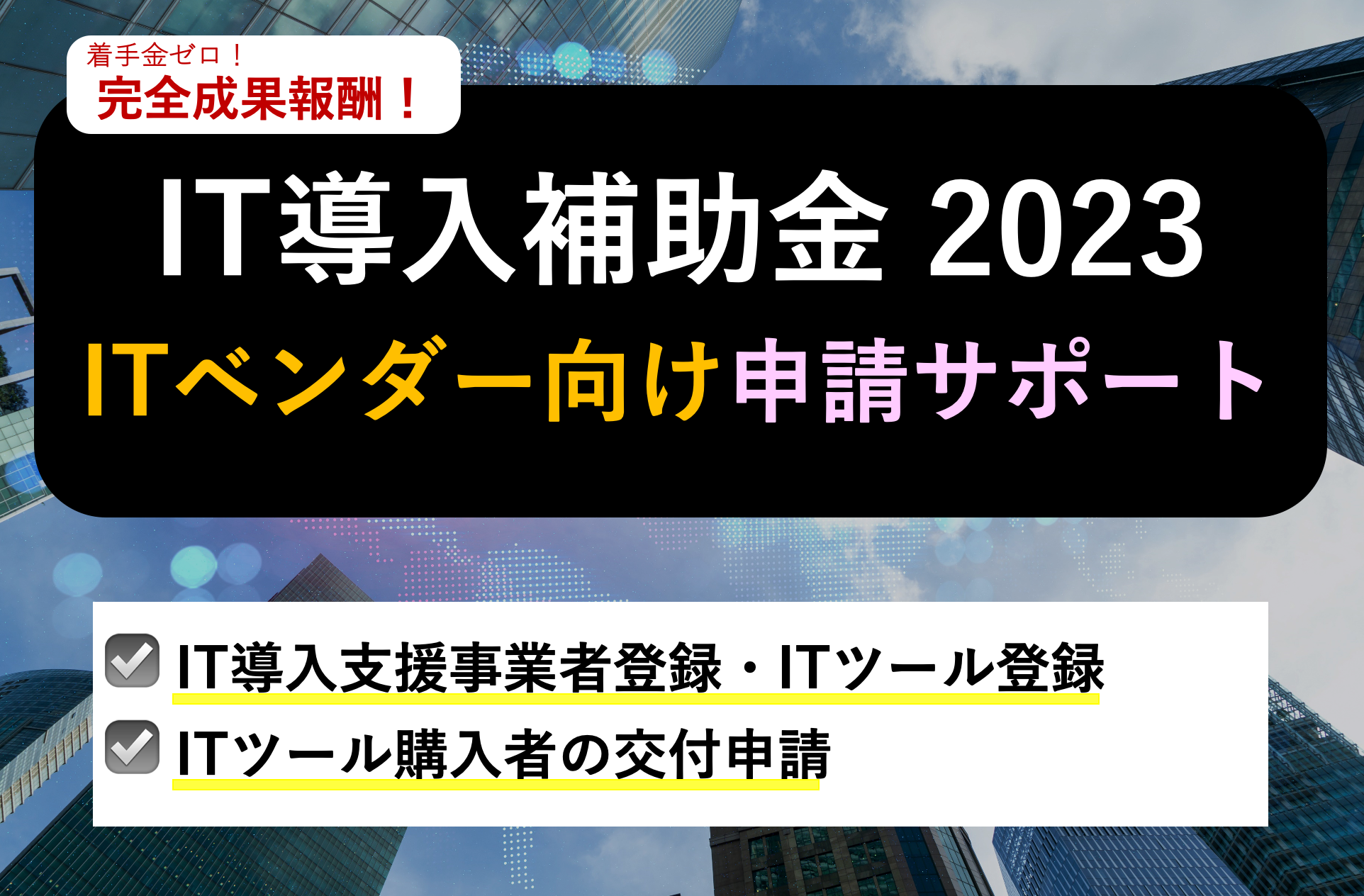 【IT導入補助金2023】ITベンダー向け申請サポートを開始。ITツール登録からITツール購入者の補助金申請支援までを一括でサポート。