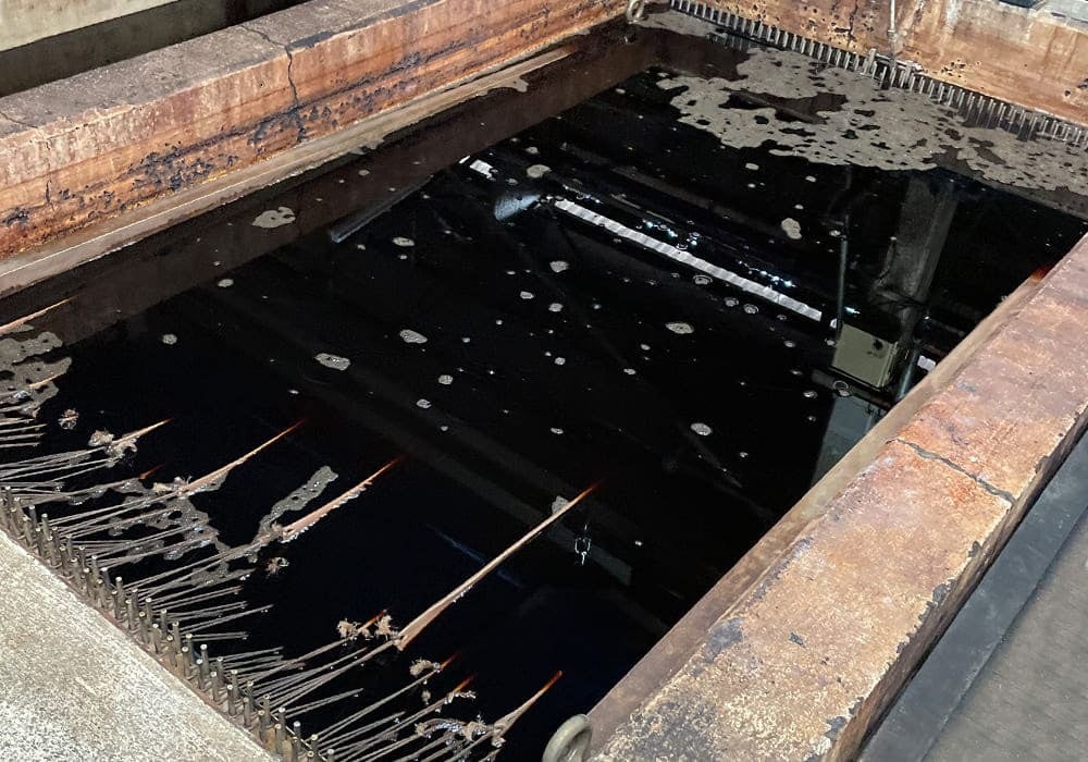 ヌメ革の鞣し工程には国内でも数少ないピット槽を用いています。長時間ピット槽に漬け込むことで繊維をほぐさずに鞣され、一般的なドラムで鞣すよりも圧倒的に時間も手間もかかりますが、最高の風合いと堅牢性を有します。