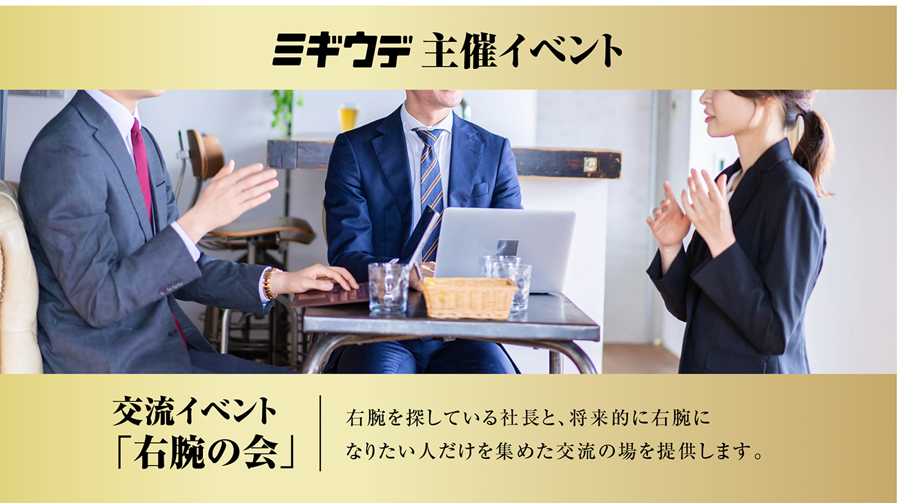 経営者の右腕となる希少人材(エグゼクティブ人材)へ積極的にアプローチする攻めの採用・転職をご支援をしている株式会社ミギウデ(東京都中央区)は、2023年6月16日、右腕を探している社長と右腕になりたい人の「つながり」を生む「右腕の会」を開催します。