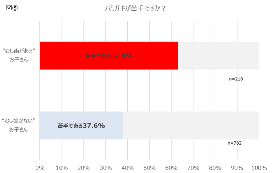 “むし歯がある”お子さんのうち、6割以上が「ハミガキが苦手」と回答!