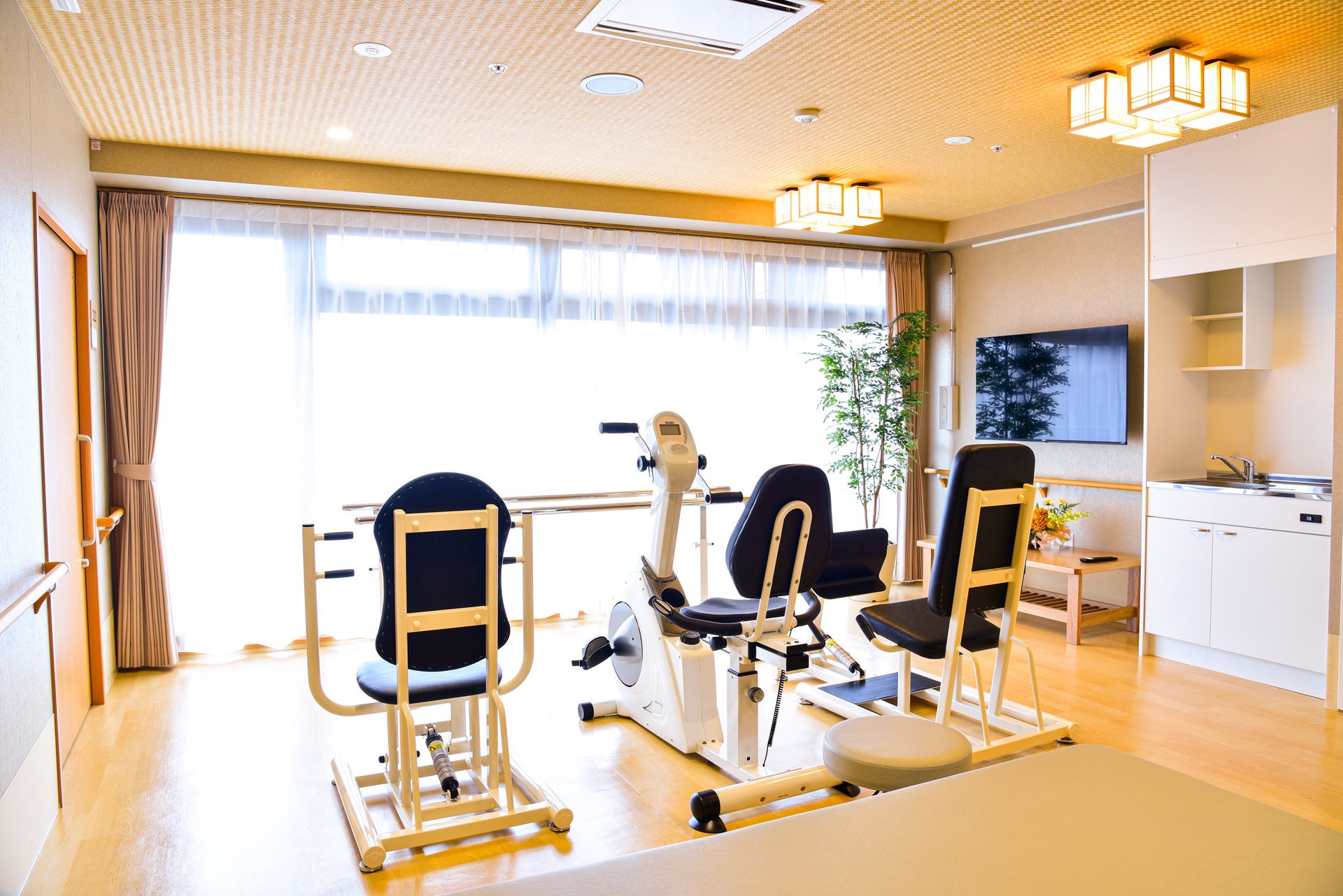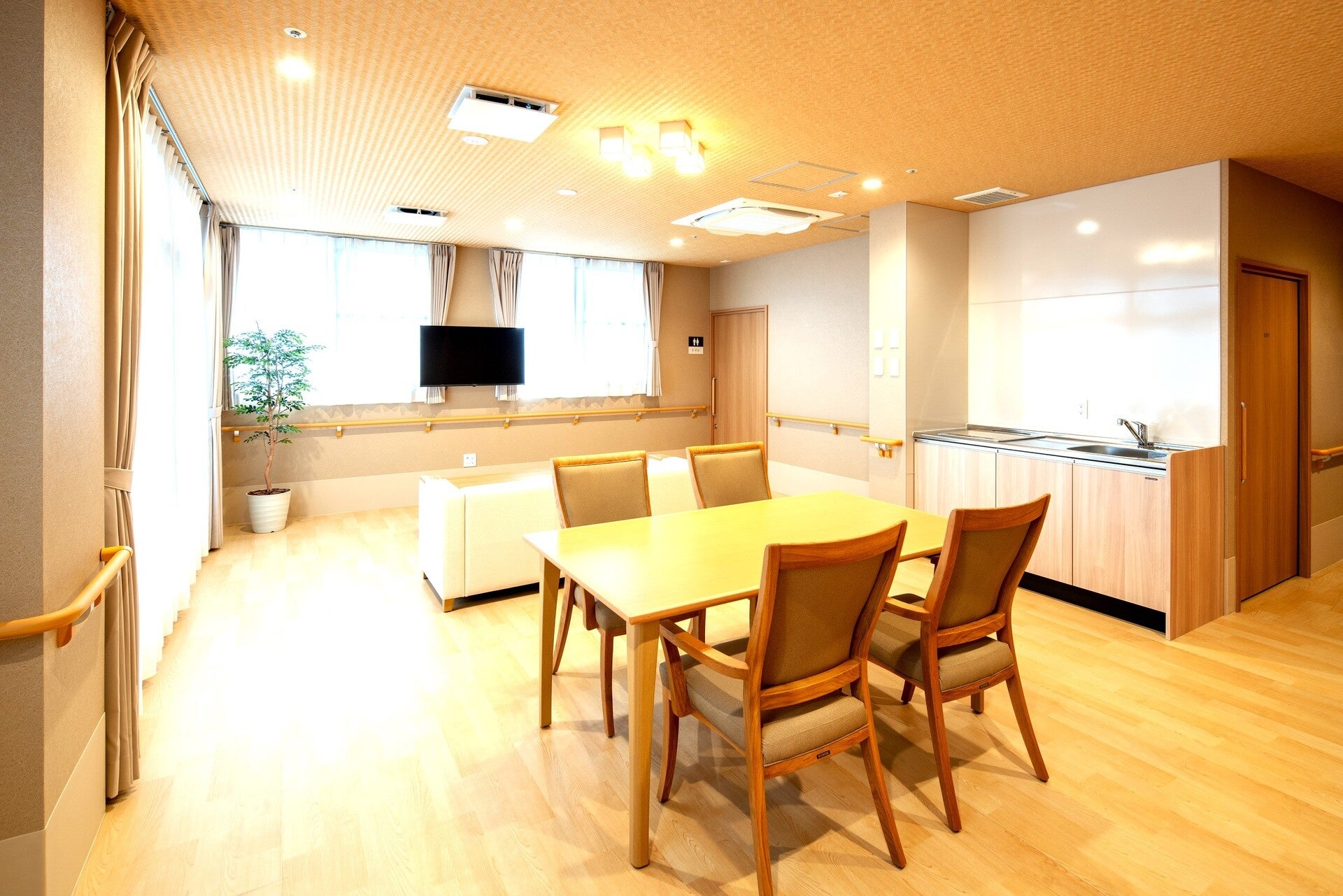 共用部設備: 食堂、談話室、相談室、大浴場・浴室(機械浴)、洗濯室、エレベーター、リハビリ機器