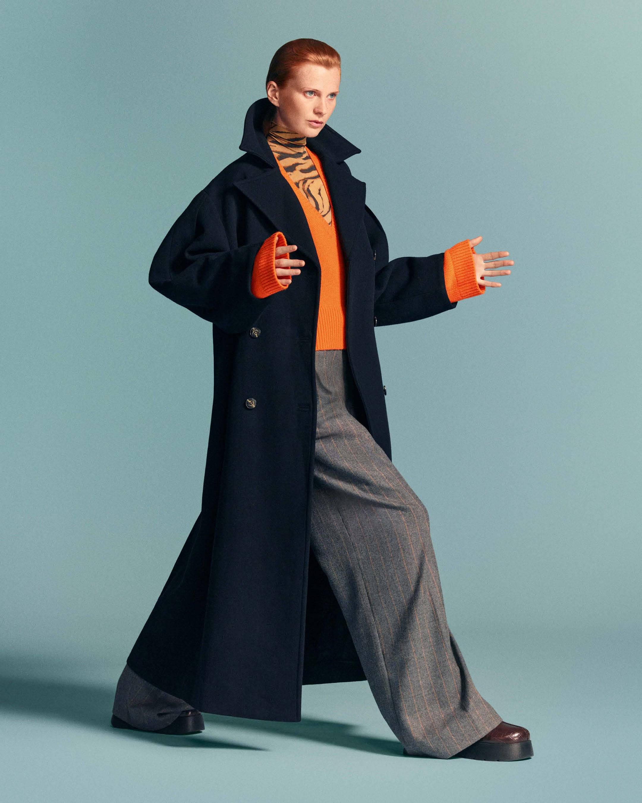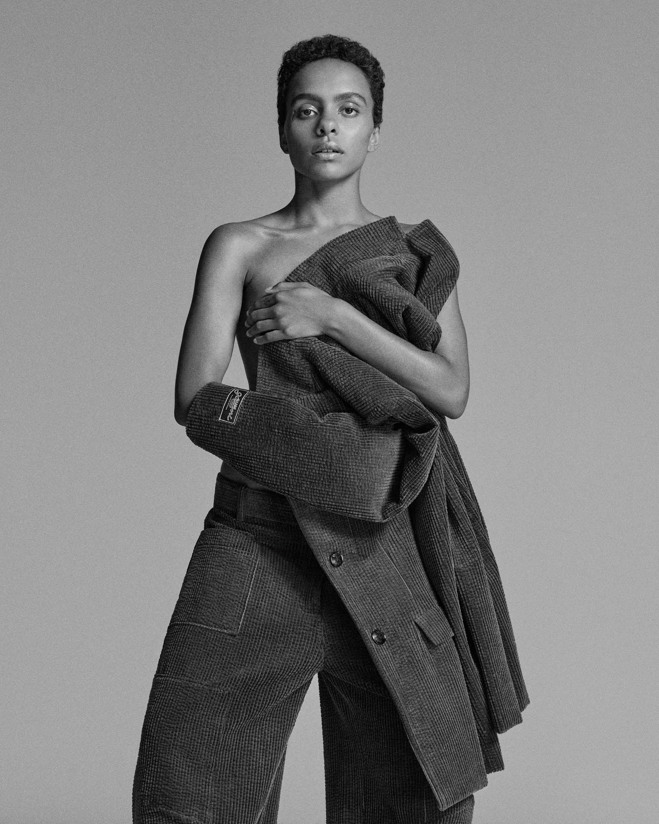 フォトグラファーのMark Kean(マーク・キーン)とスタイリストVanessa Reid(ヴァネッサ・レイド)によって、白黒ポートレートと鮮やかなカラーショットを組み合わせ、キャストが動きの中や会話、笑いの中で魅力を放つ瞬間を捉えています。彫刻的なシルエットや重ね着による質感の表現により、光と影の変化を通して、ボリュームと抑制、柔らかさと構造というコレクションのテーマを表現しています。