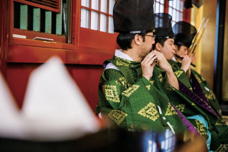 オープニングは、日本で一番古い音楽といわれる雅楽です。 神田神社神職による、雅楽の演奏をお楽しみいただきます。